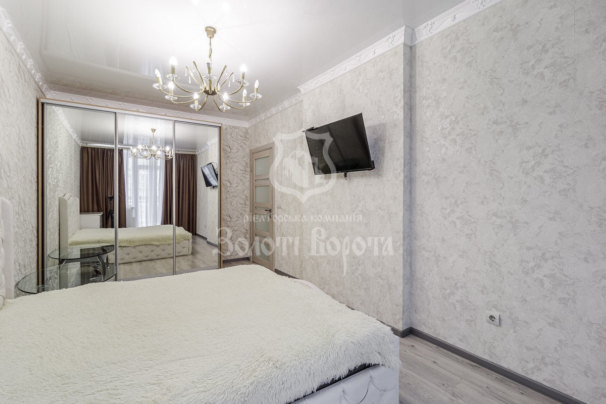 У квартирі виконано якісний ремонт за індивідуальним дизайнерським проєктом із використанням дорогих матеріалів. Простір продуманий до дрібниць: встановлено шумоізоляцію, пожежну сигналізацію, панорамні вікна з відкритим видом на район.