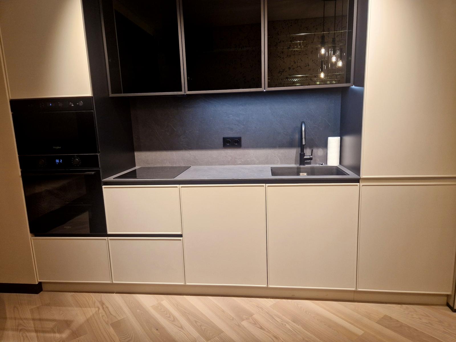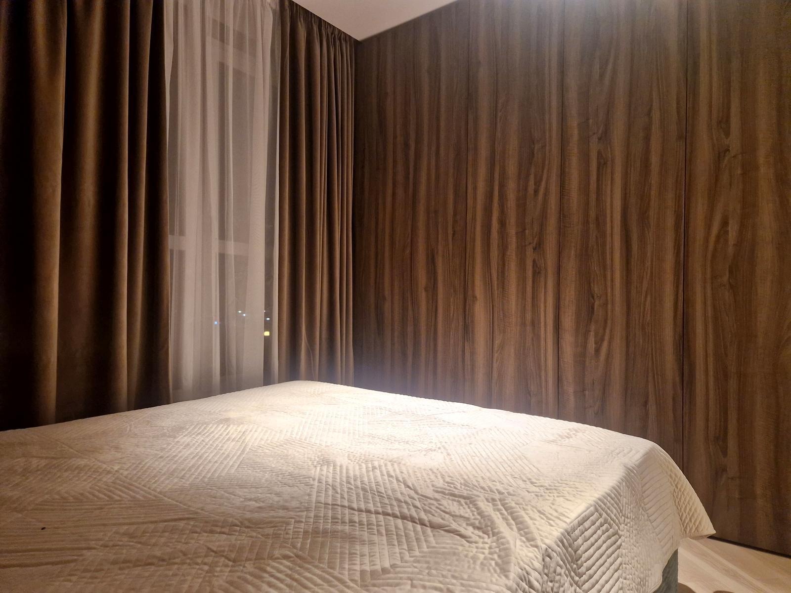 Планування продумане: кухня-вітальня площею 15 м², окрема спальня, гардеробна та поєднаний санвузол. Квартира виконана з якісним сучасним ремонтом, мебльована та оснащена побутовою технікою. Висота стель — 3 метри, панорамні вікна наповнюють простір світлом. Є лічильники води та електроенергії.