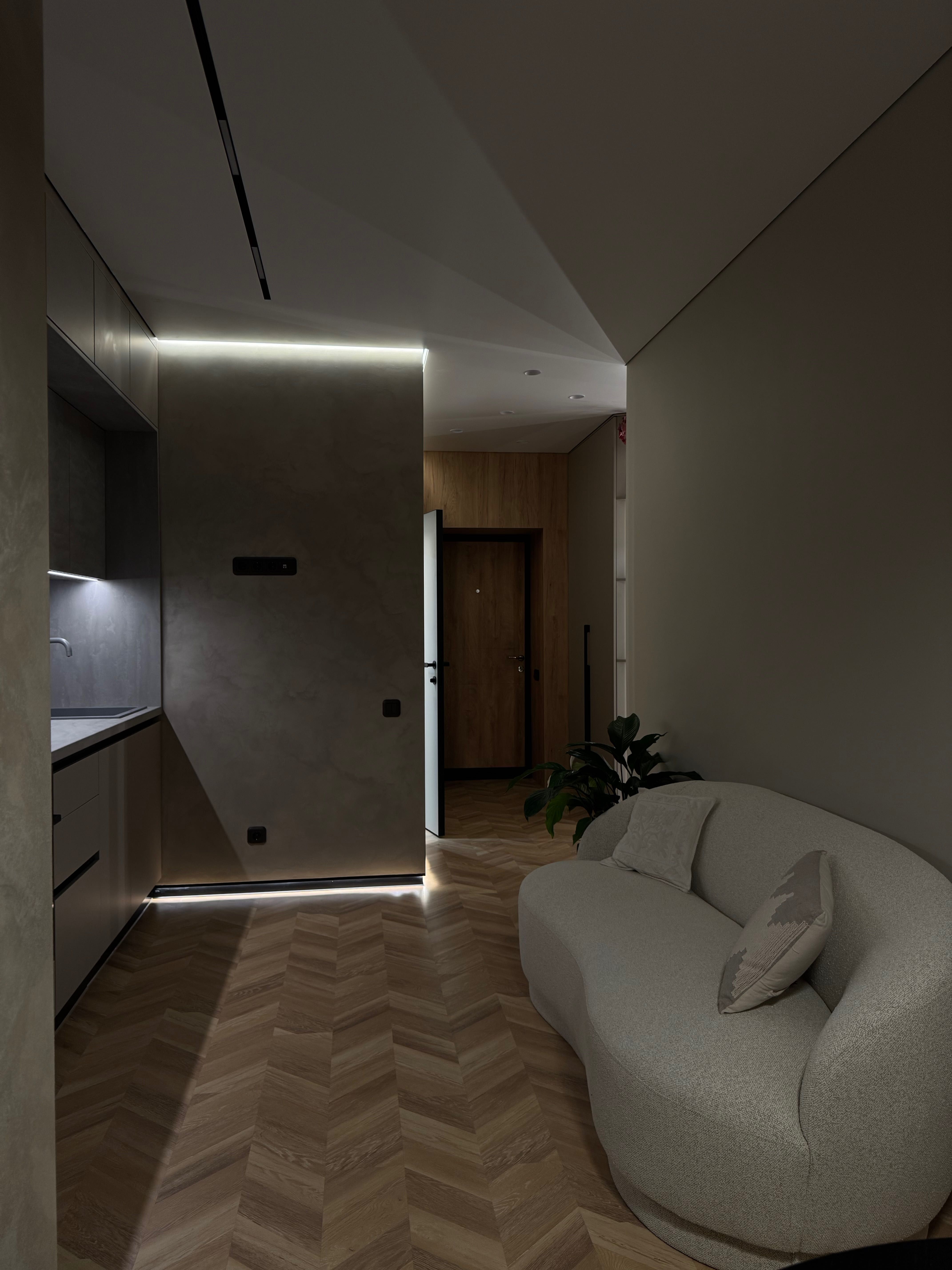 Це найзатишніша квартира комплексу, створена з увагою до деталей та дизайнерськими рішеннями. Простір наповнений світлом завдяки різним сценаріям освітлення, що дозволяють змінювати атмосферу залежно від настрою.