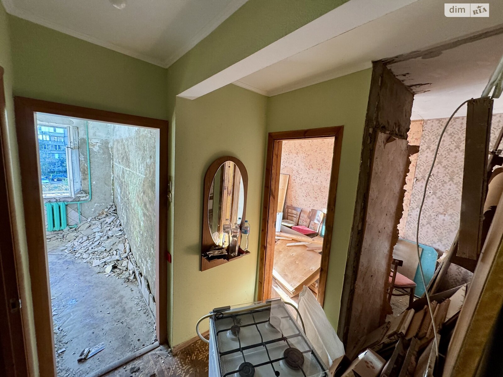 Наразі квартира повністю звільняється від старих речей: усе зайве та сміття, що ви бачите на фотографіях, знаходиться в процесі активного прибирання та вивозу, тож ви отримаєте чистий простір, повністю готовий до початку будівельних робіт.