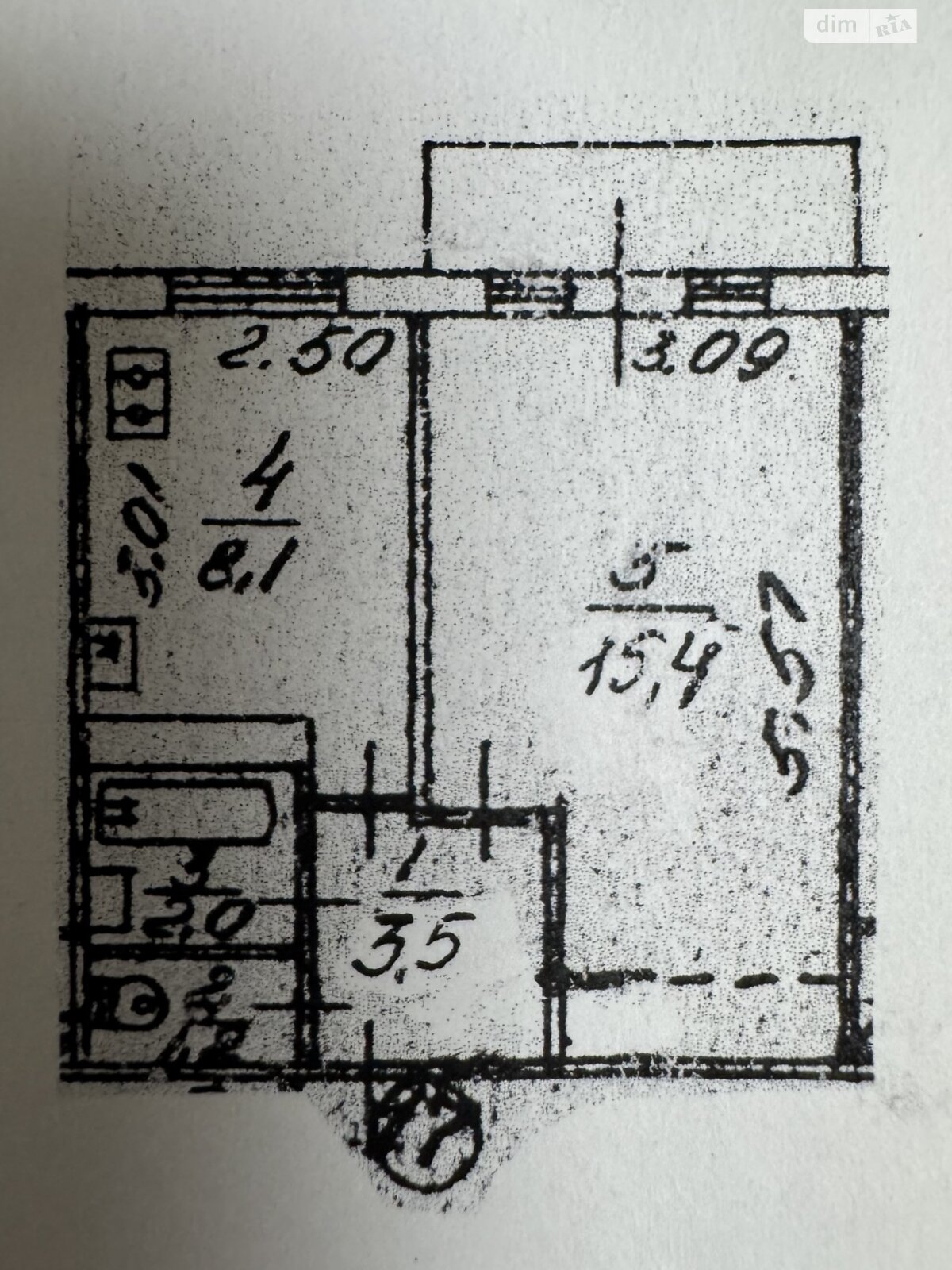 Площа, кв.м.: 34/15.4/8.1