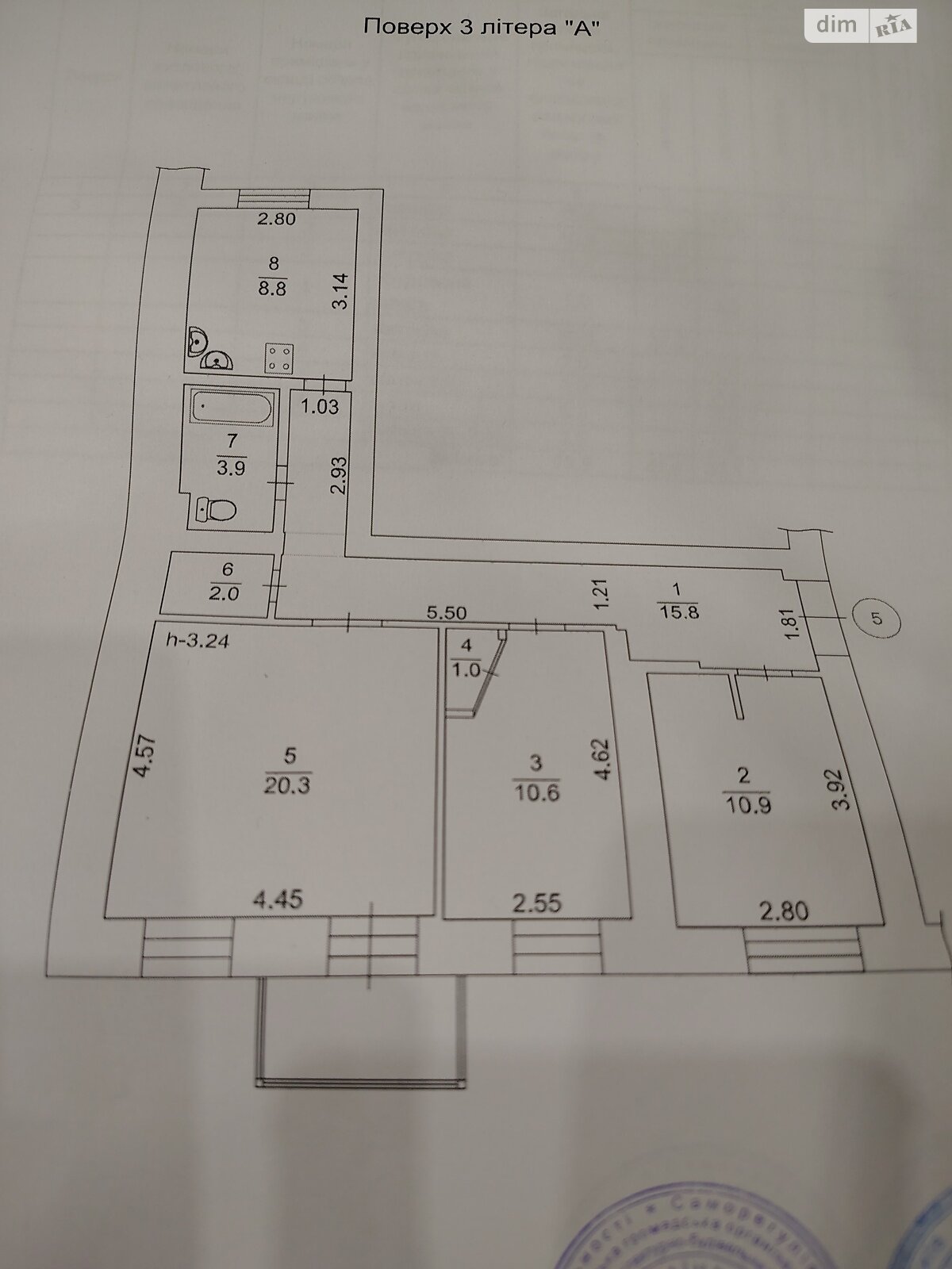 Квартира розташована на комфортному 3-му поверсі. Стан дозволяє відразу втілити власні дизайнерські рішення: стіни пофарбовані, на підлозі збережено класичний паркет, встановлено підвісну стелю. Помешкання вільне від меблів, тож ви не переплачуєте за чужий інтер'єр. Для вашого комфорту є газ, усі необхідні лічильники (світло, вода, газ) та бойлер, що гарантує гарячу воду незалежно від сезону.