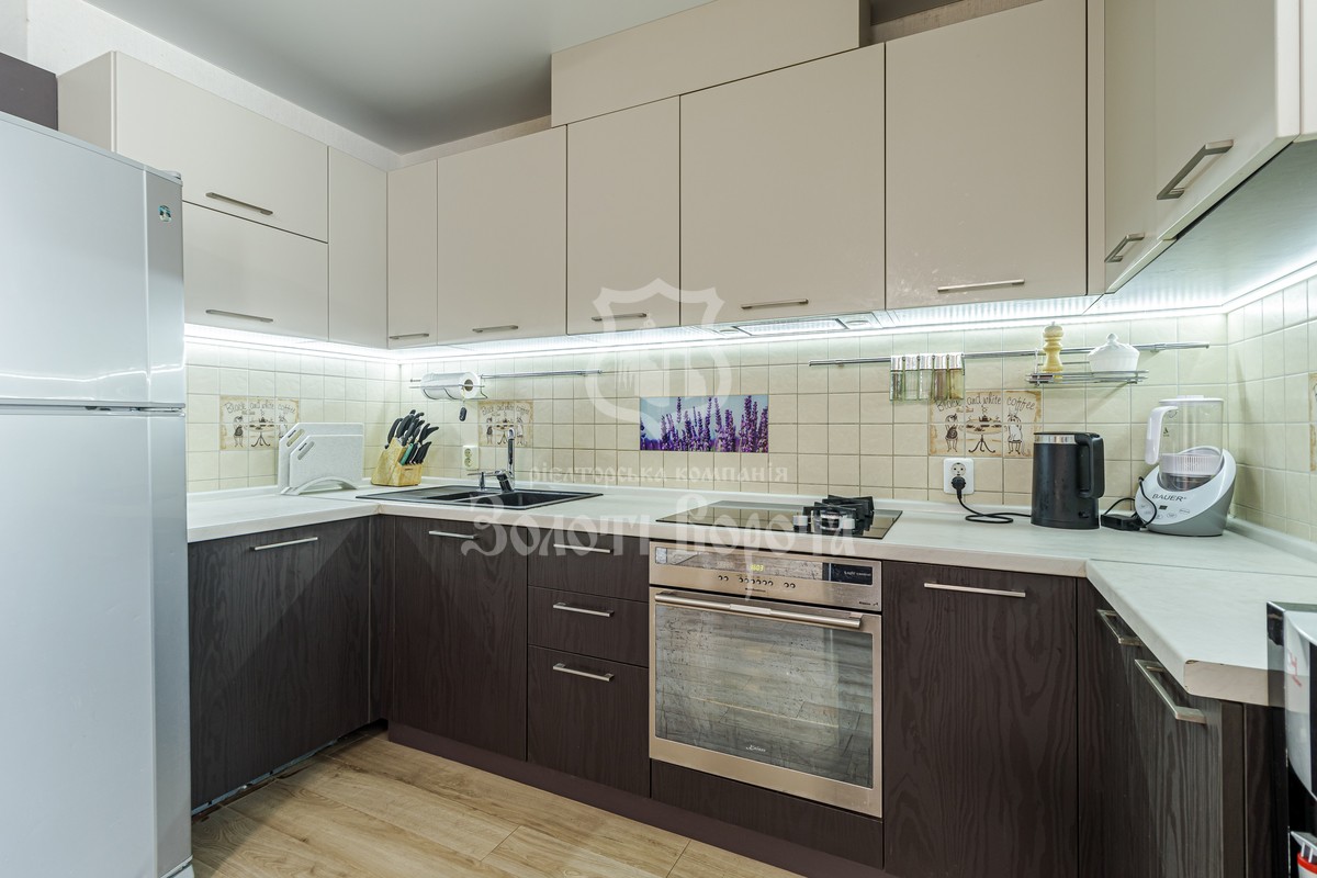 Ремонт виконано з високоякісних матеріалів за авторським дизайн-проєктом. Кухня обладнана сучасною технікою: холодильником, посудомийною машиною, духовкою та плитою, а решта меблів залишаються за домовленістю. Простір продуманий для комфортного сімейного життя та прийому гостей, з достатньою кількістю місць для зберігання речей.