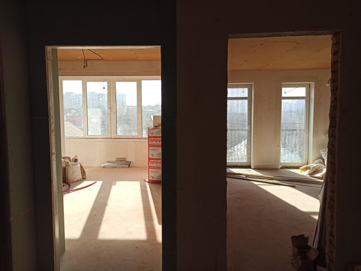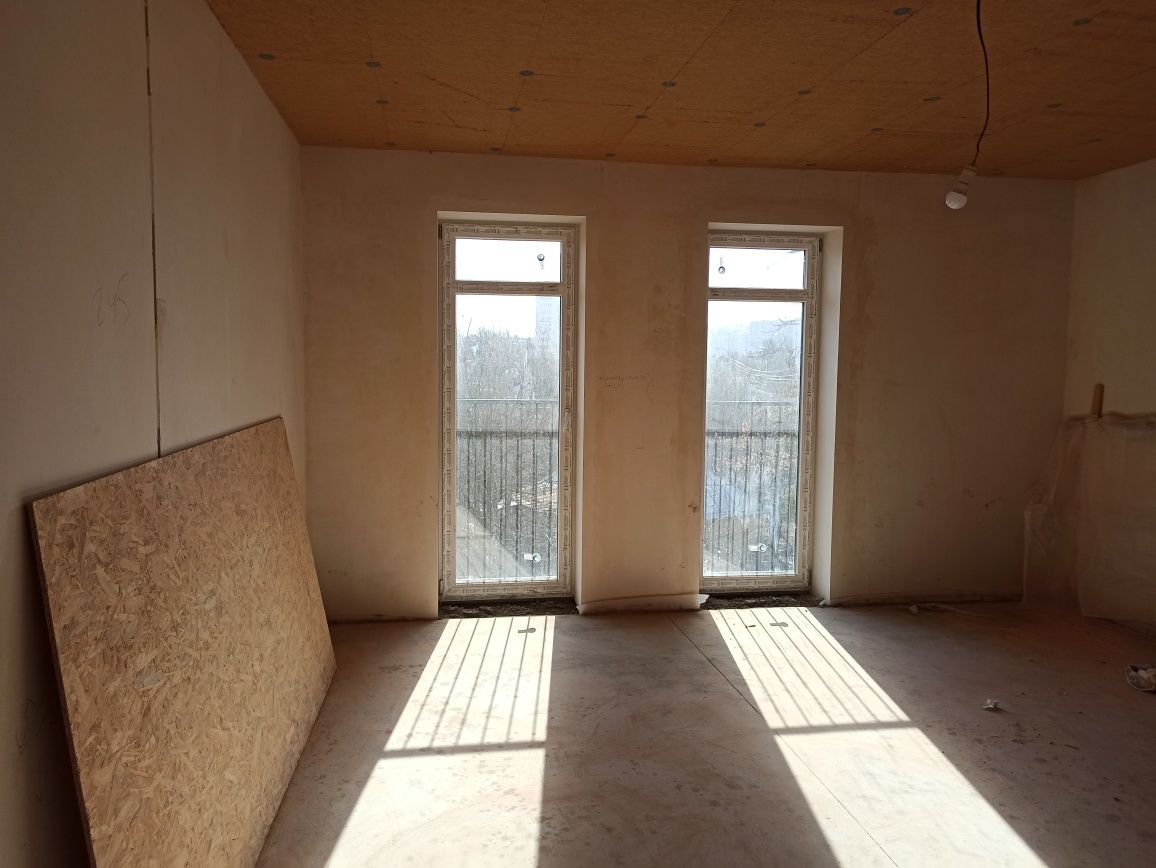 Квартира готувалася «для себе» з використанням професійних технічних рішень. Вже виконано найбільш трудомісткі роботи: змонтована тепла водяна підлога, зроблена якісна стяжка та штукатурка стен. На стелі встановлена екологічна шумоізоляція, що гарантує акустичний комфорт. Проведено професійну розводку електрики та встановлено добротні вхідні двері. Особливої уваги заслуговує кухня з величезними енергозберігаючими вікнами Rehau з аргоновим наповненням, яка вже об’єднана з лоджією для збільшення корисного простору.