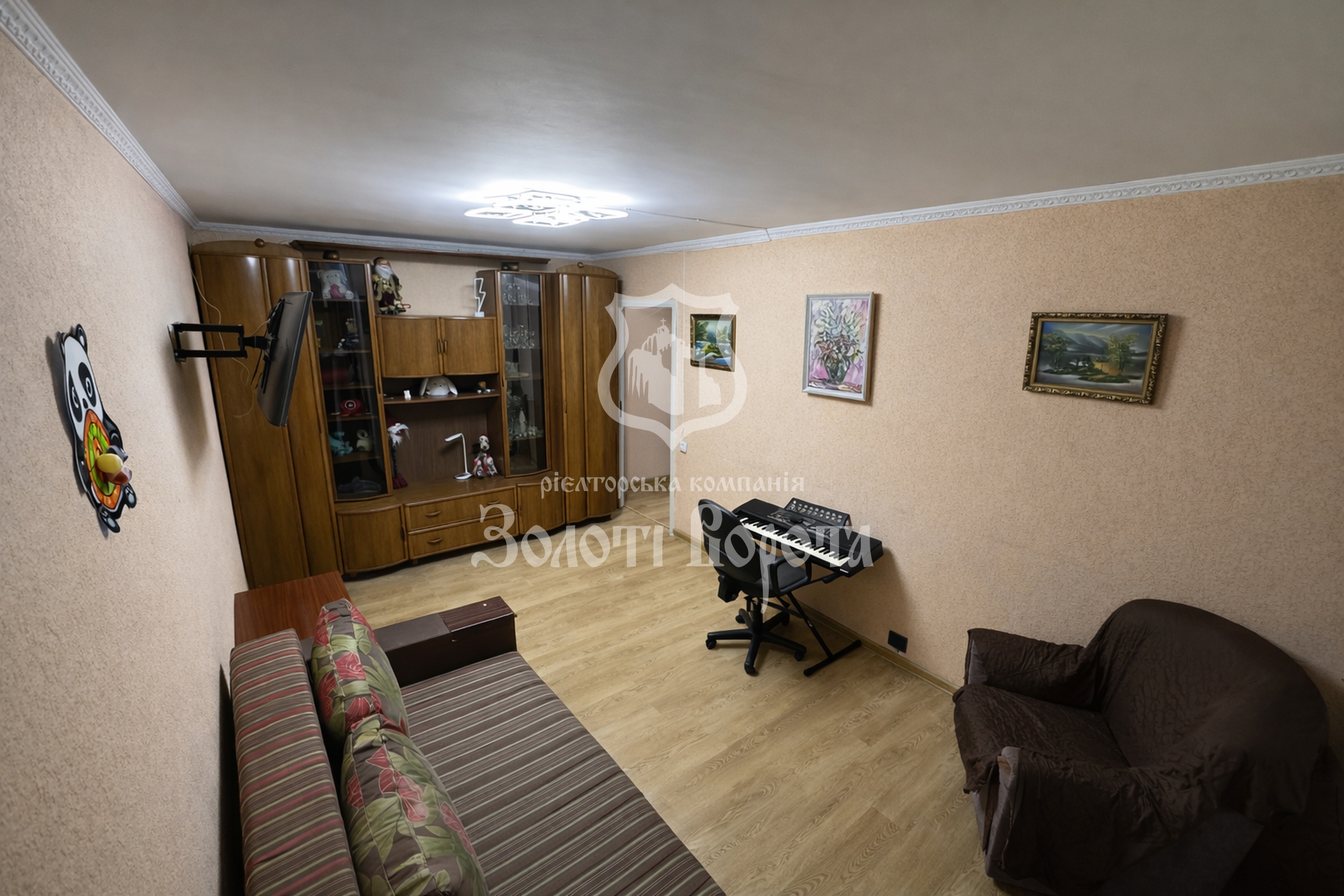 Квартира має дуже вдале планування: дві окремі житлові кімнати дозволяють зручно організувати простір для проживання родини. Оселя тепла й світла, а засклена та утеплена лоджія може слугувати додатковою функціональною зоною — для роботи, відпочинку або зберігання.