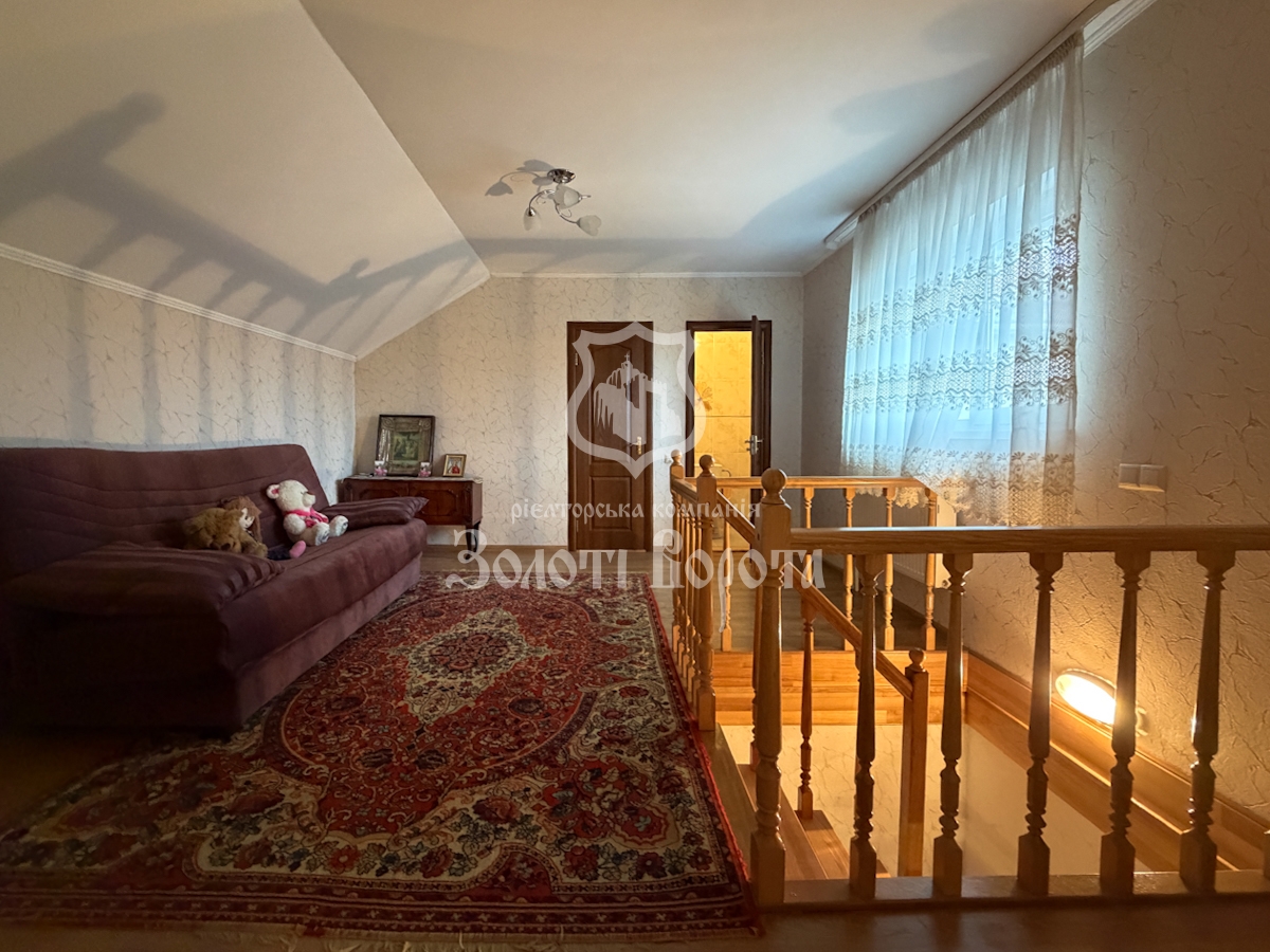 Головний житловий будинок — п’ятикімнатна резиденція: простора вітальня з каміном, кухня, 3 спальні, окремий кабінет для роботи з дому, 3 санвузли. Додатковою перевагою є велике горище, яке можна адаптувати під зону відпочинку, ігрову кімнату або домашній кінотеатр.