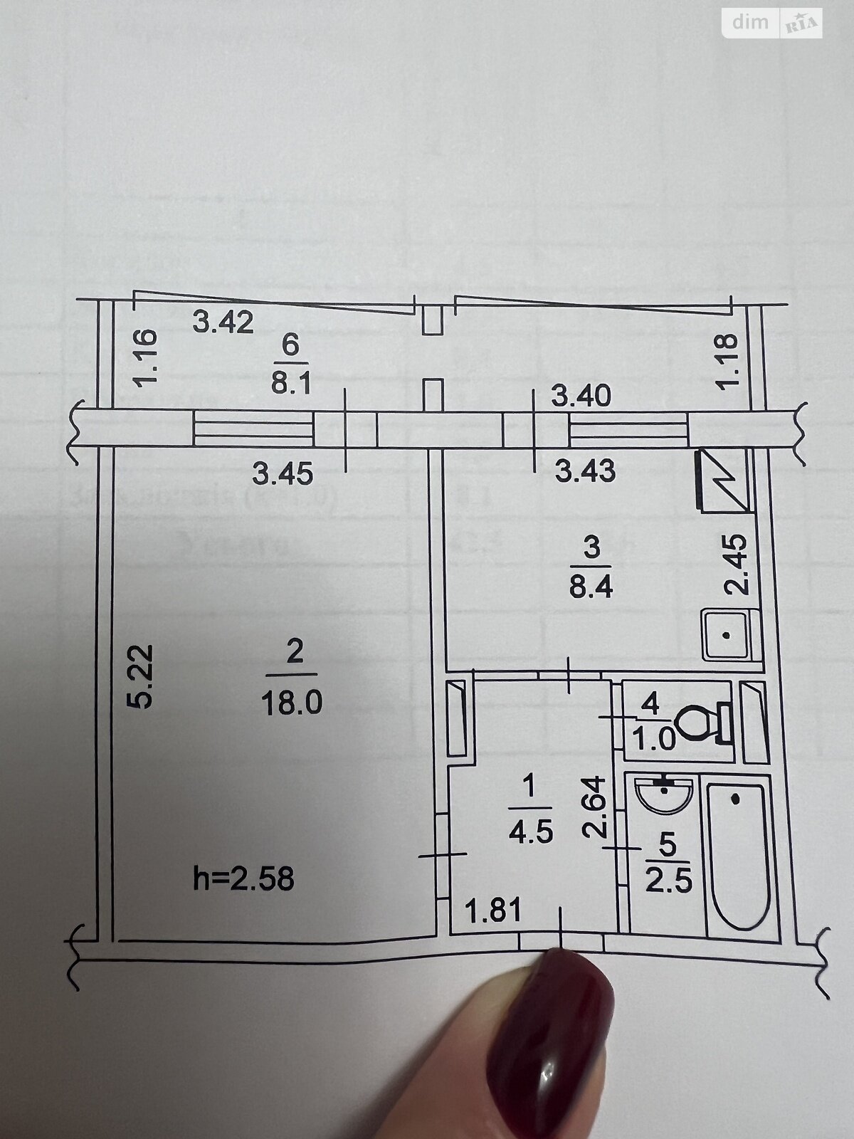 | Площа, кв.м.: | 42.5/18/8.4 |