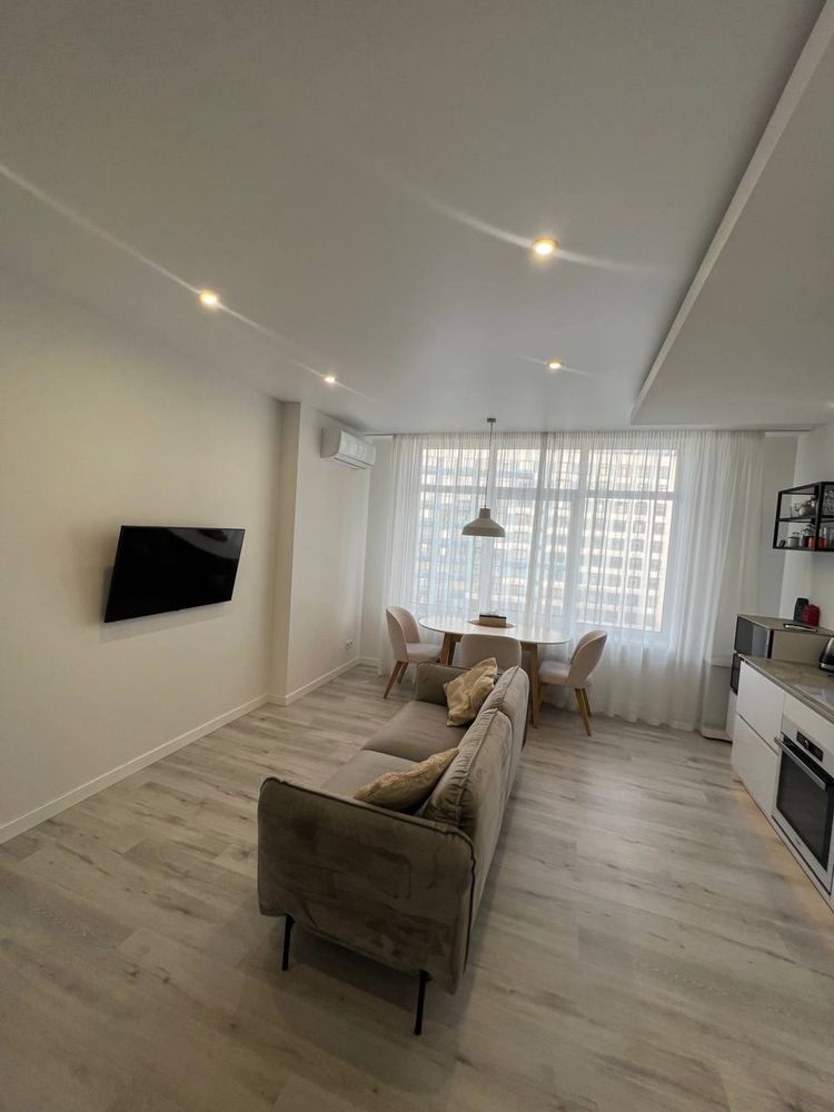 До продажу пропонується розкішна 2-кімнатна квартира на Лівобережному масиві, розташована на видовому 21 поверсі сучасного 25-поверхового будинку. Загальна площа 69 м² спланована з безкомпромісною увагою до комфорту: дві окремі світлі кімнати, два санвузли, кухня-вітальня та повноцінна гардеробна площею 4,5 м² у спальні. Особливістю помешкання є виділене робоче місце, що ідеально підходить для віддаленої роботи. Ремонт виконано з використанням топових матеріалів: підлога викладена зносостійким кварц-вінілом єдиним контуром, а в санвузлах використано стильний керамограніт. Оселя оснащена інтелектуальною системою теплої підлоги в зоні кухні та санвузлів з окремим керуванням через Wi-Fi. Клімат у квартирі забезпечує кондиціонер Cooper&Hunter, а затишок створюють комбіновані натяжні та гіпсокартонні стелі зі складними сценаріями освітлення від бренду Maytoni. Електрику розведено з поділом на зони для максимальної зручності та безпеки.