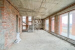 У будинку зовнішні стіни тришарові — пінобетон, утеплювач, фасадна керамічна цегла СБК. Внутрішні перегородки цегляні, сходи залізобетонні. Дах — металочерепиця ARCELOR по суцільній дерев’яній обрешітці з ефективним утеплювачем.