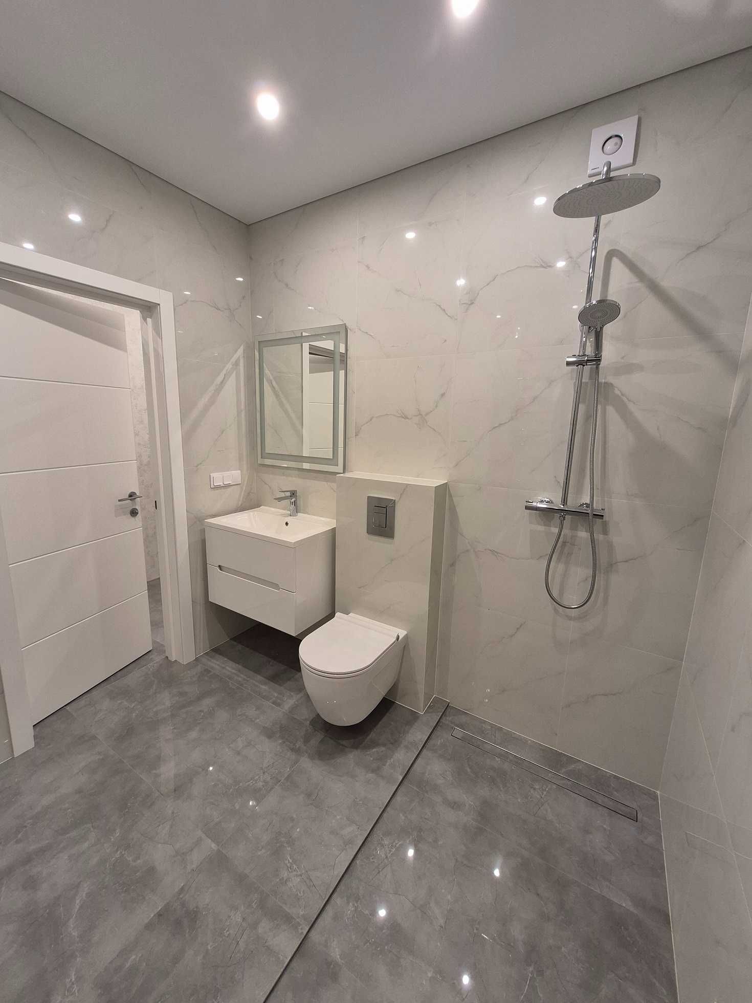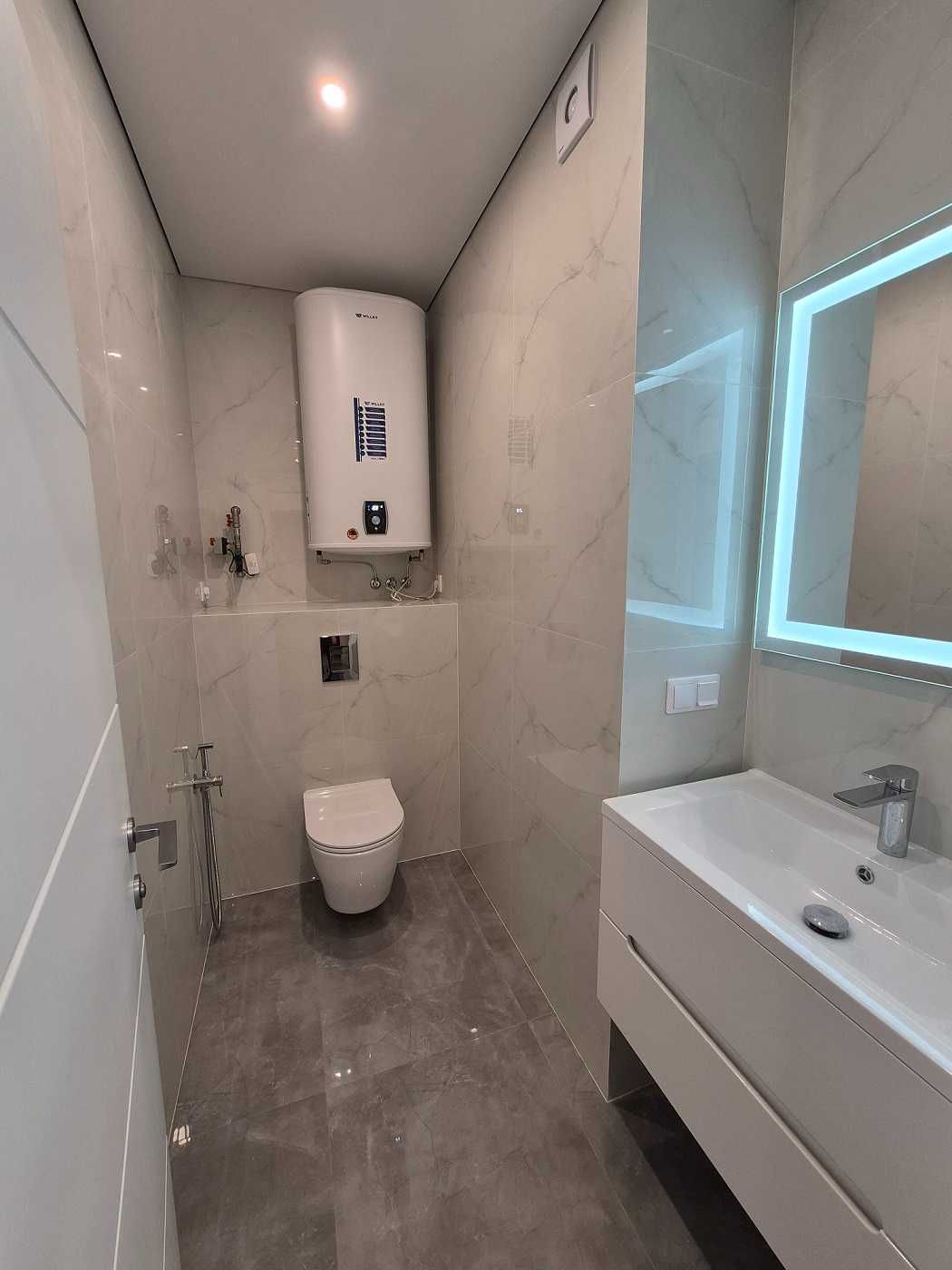 Квартира пропонується з повністю укомплектованими санвузлами (дзеркала з підігрівом, брендові меблі, душовий гарнітур із термостатом), що дозволяє вам облаштувати житловий простір та кухню за власним смаком (всі комунікації в кухонній зоні вже закладені згідно з оптимальним проєктом).