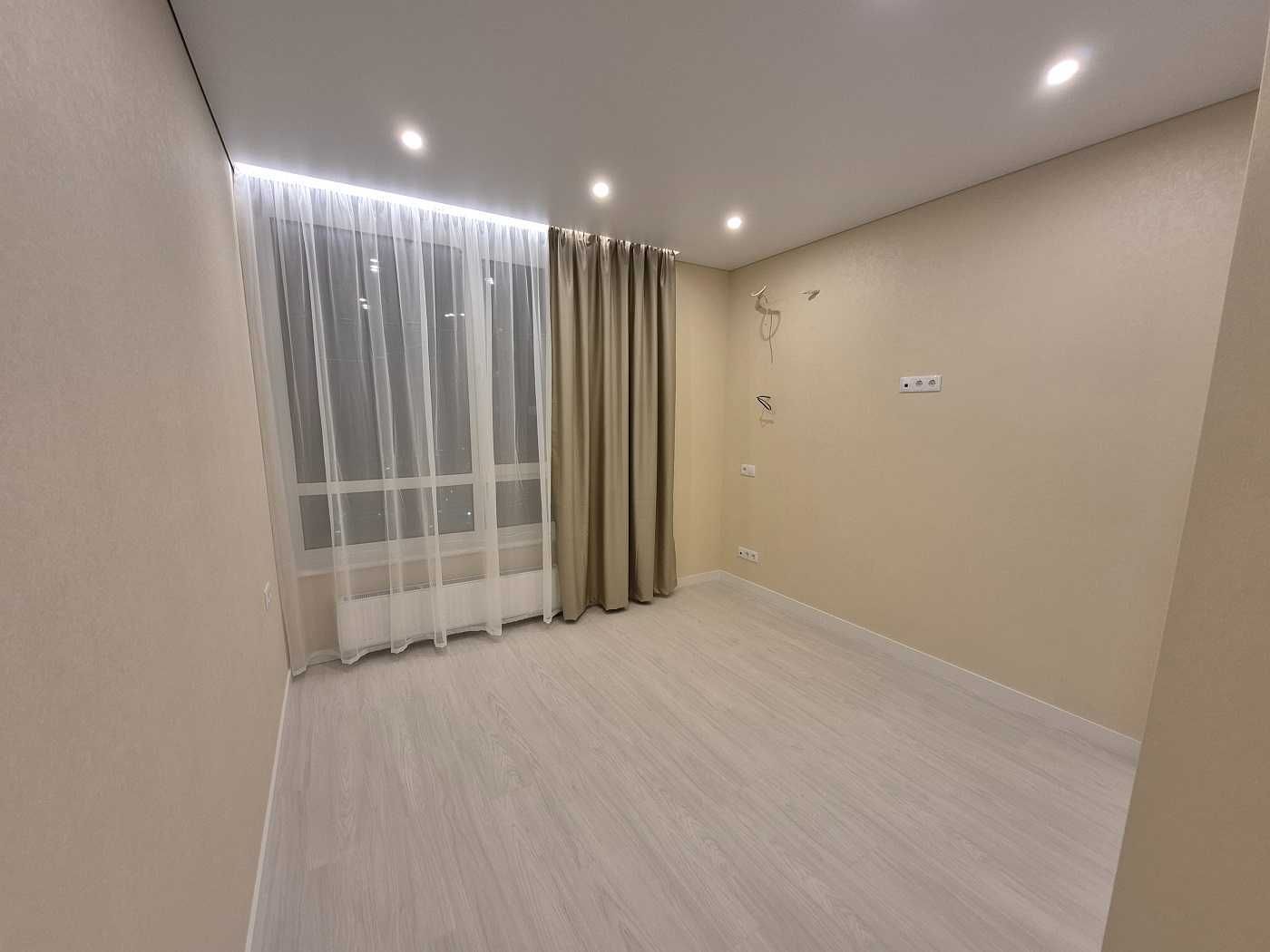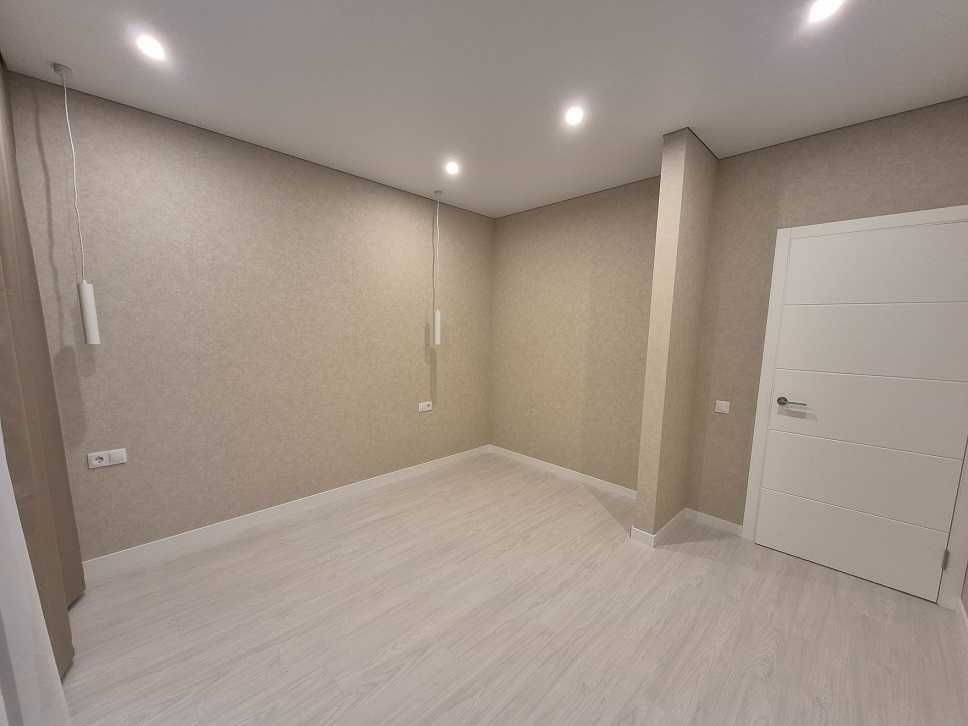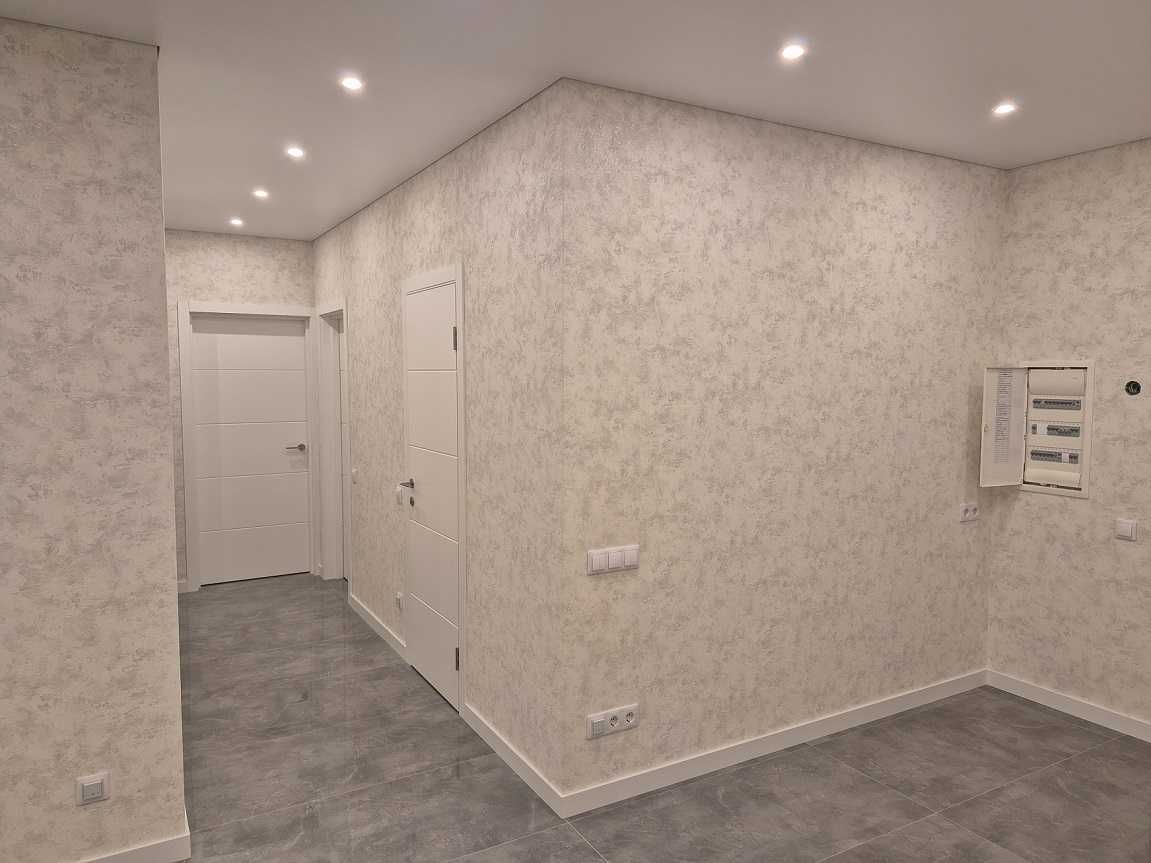 Планування квартири продумане до дрібниць: простора кухня-вітальня, три окремі кімнати з нішами під шафи, велика лоджія та окрема гардеробна зона. Ремонт виконано за найвищими стандартами якості: встановлено чорнову сантехніку Tece/Ostendorf, систему антипотопу Tervix Pro, інсталяції Grohe та чистову італійську сантехніку бренду Devit. Особливої уваги заслуговує підлога — широкоформатний турецький керамограніт із системою Smart-підігріву (керування з телефону) та вологостійкий німецький ламінат Egger у кімнатах. Стеля виконана з тіньовим профілем та вбудованими карнизами з підсвіткою Rishang, а стіни оздоблені високоякісними шпалерами.