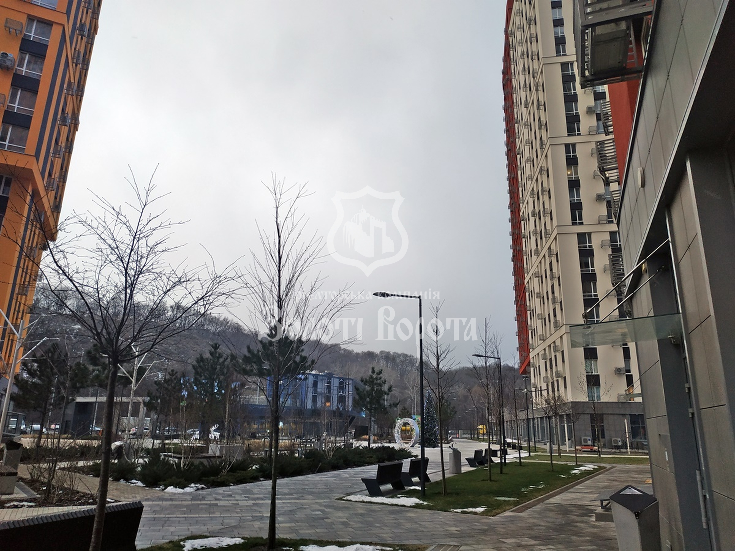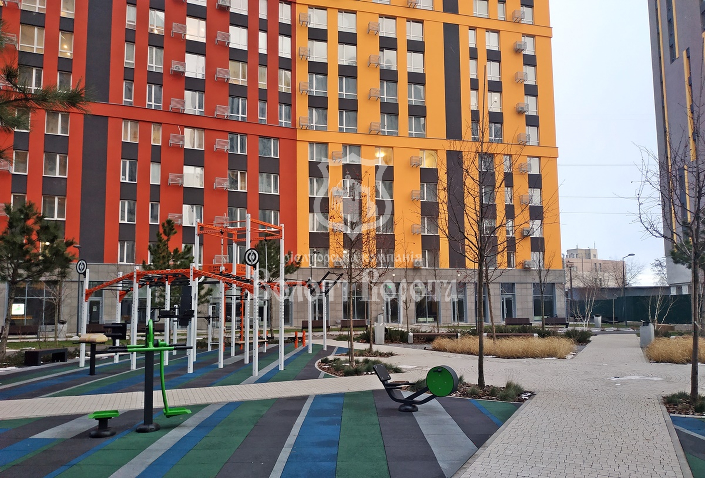 Внутрішній простір комплексу виконаний у форматі зеленого парку з ландшафтним дизайном, зонами для прогулянок, сучасними дитячими та спортивними майданчиками, а також місцями для спокійного відпочинку.