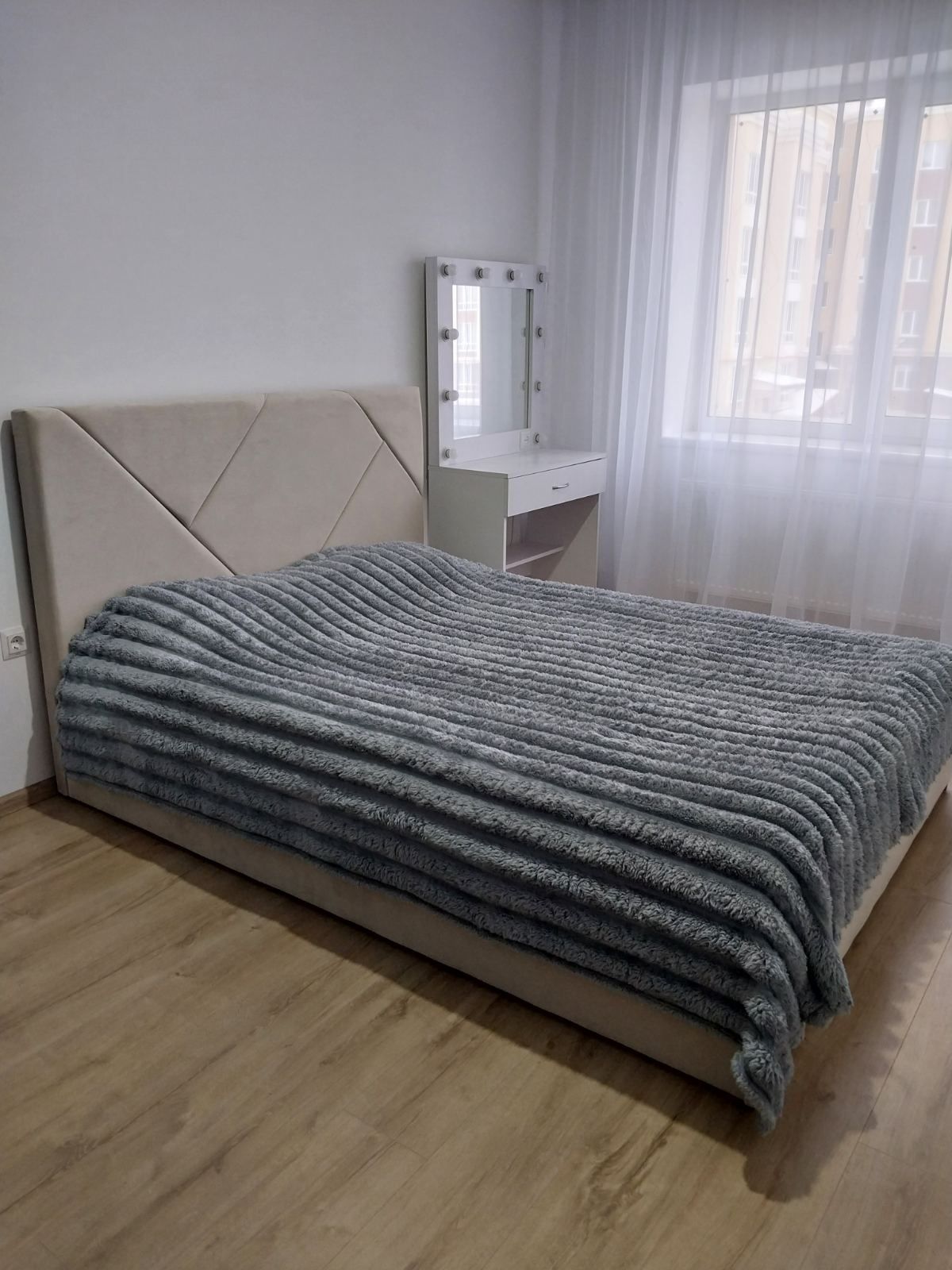 У квартирі виконано сучасний якісний ремонт із використанням декоративної штукатурки, шпалер, ламінату та кахлю. Встановлено нові міжкімнатні та вхідні двері, металопластикові склопакети, усі оздоблювальні матеріали підібрані в нейтральній сучасній стилістиці. Оселя повністю укомплектована для проживання та не потребує додаткових вкладень. Вбудована кухня з електроплитою та витяжкою, холодильник, пральна машина, кондиціонер, а також двоспальне ліжко й диван залишаються новим власникам.