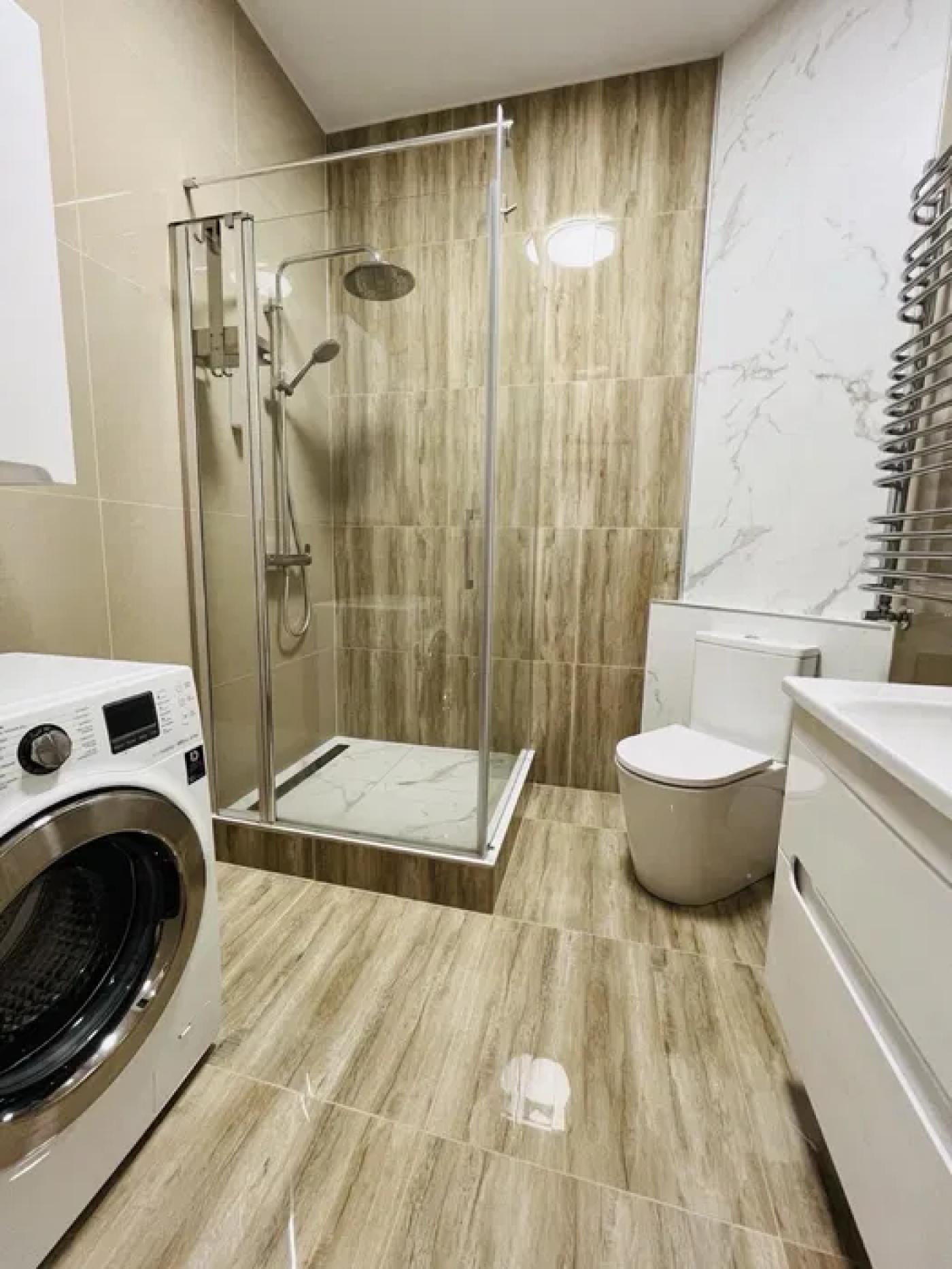 У квартирі зроблений якісний ремонт: підлога вкрита ламінатом, стіни та стеля в охайному стані. Санвузли оздоблені плиткою, встановлена сантехніка. Кухня повністю укомплектована меблями та технікою, все продумано до дрібниць для комфортного життя.