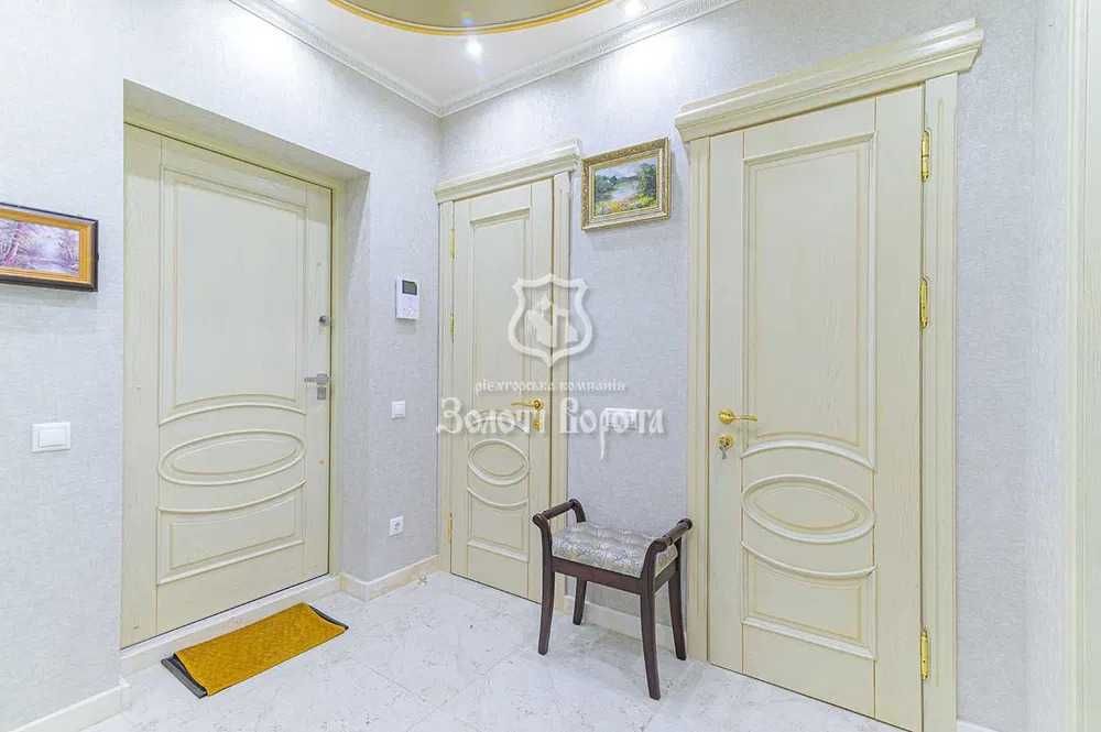 Стіни та стелі оздоблені коштовною декоративною штукатуркою. Квартира укомплектована італійськими меблями з натуральної деревини, виготовленими на замовлення, та преміальною європейською технікою. Узаконене перепланування дозволило ідеально зонувати простір на гостьову частину (хол, кухня-вітальня, санвузол із душовою та два підсобних приміщення) та приватну зону господарів (спальня, гардеробна та ванна кімната). Комфорт забезпечують підігрів підлоги, індивідуальне опалення та продумане освітлення. Безпека гарантована системою охорони та кількома бронедверима. Будинок обладнаний генератором для безперебійної роботи ліфтів та водопостачання.
