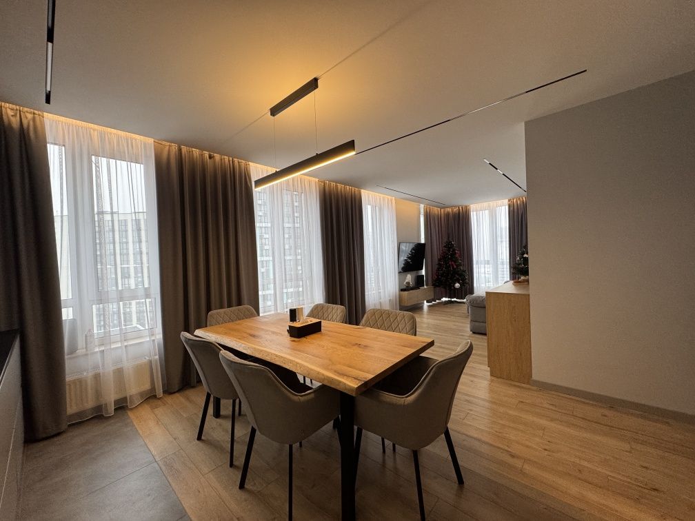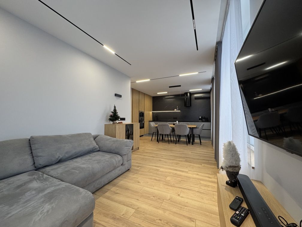В оселі виконано новий сучасний ремонт із використанням якісних матеріалів. Планування квартири максимально функціональне: велика кухня-вітальня для спільного дозвілля, основний санвузол із ванною та додатковий гостьовий санвузол із душовою кабіною. Особливу увагу приділено побутовому комфорту — облаштовано окреме технічне приміщення, де розміщено бойлер та прально-сушильну машину. Квартира повністю укомплектована новими меблями та технікою, що дозволяє заїхати та жити одразу після покупки.