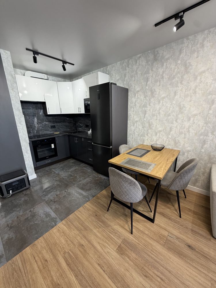 До продажу пропонується сучасна 1-кімнатна квартира площею 45 м² у престижному житловому комплексі за адресою: проспект Європейського Союзу, 13/2 (колишній проспект Правди). Помешкання розташоване на 18 поверсі 25-поверхового нового будинку.