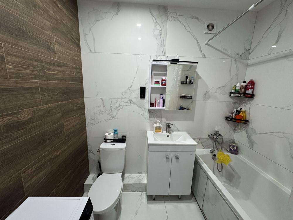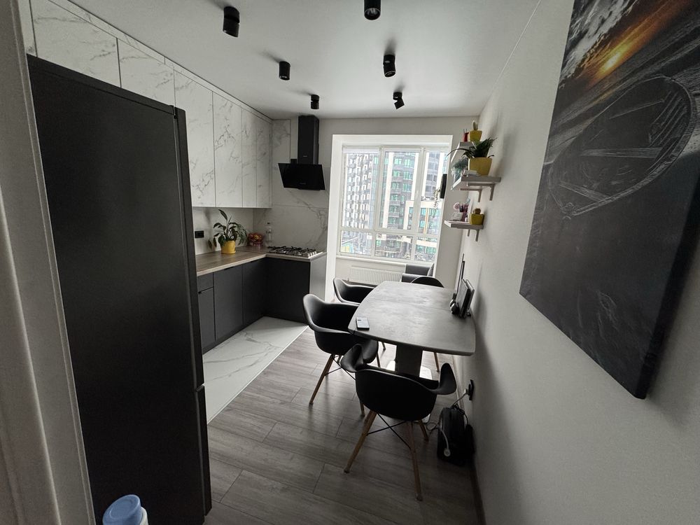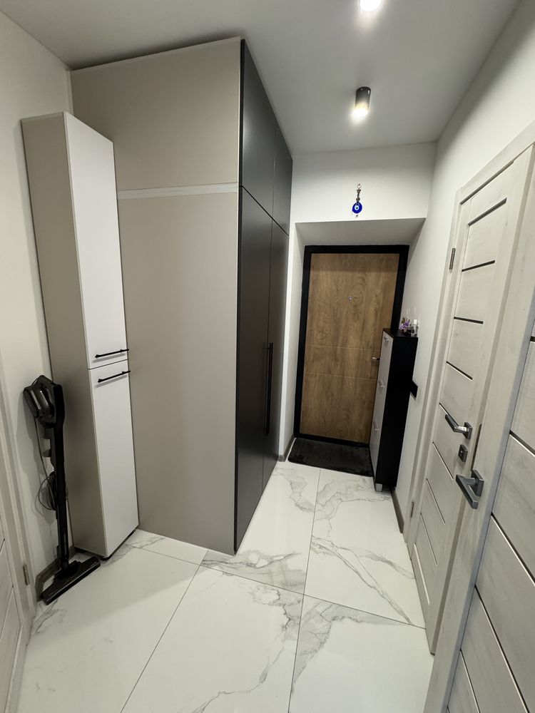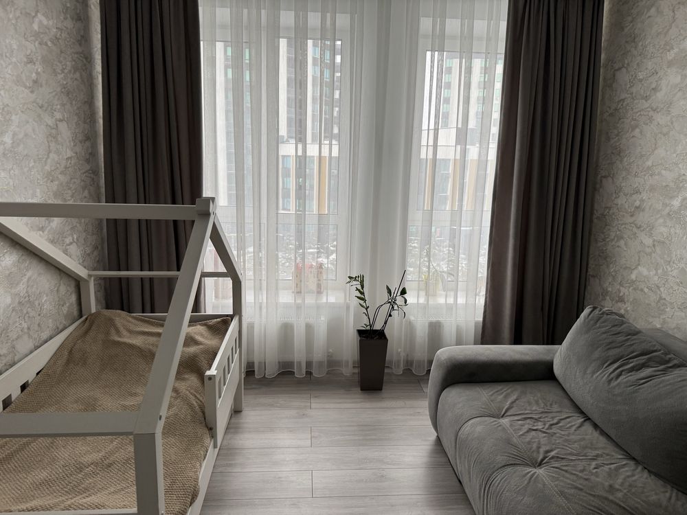 Квартира повністю готова для життя або вигідної оренди: майже всі меблі залишаються новим власникам (окрім дитячого ліжка). Простір організовано максимально функціонально: облаштована окрема гардеробна кімната площею 3,6 м², у коридорі встановлена дуже містка шафа, вузька шафа для зберігання та зручна поличка для взуття. Житлова кімната оснащена універсальним кутовим диваном, який можна трансформувати у прямий. Кухня укомплектована якісним гарнітуром, обіднім столом зі стільцями та холодильником, а ванна кімната повністю обладнана необхідною сантехнікою. Продаж здійснюється за переуступкою (витрати 50/50), яка оформлюється у відділі продажу всього за один день, що забезпечує швидкість та прозорість угоди.