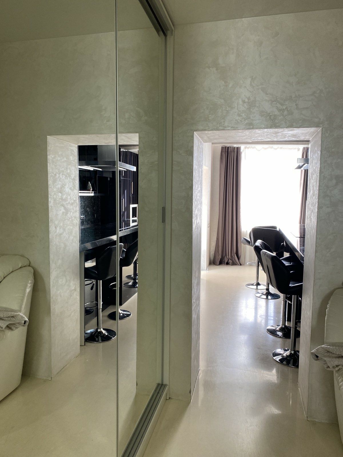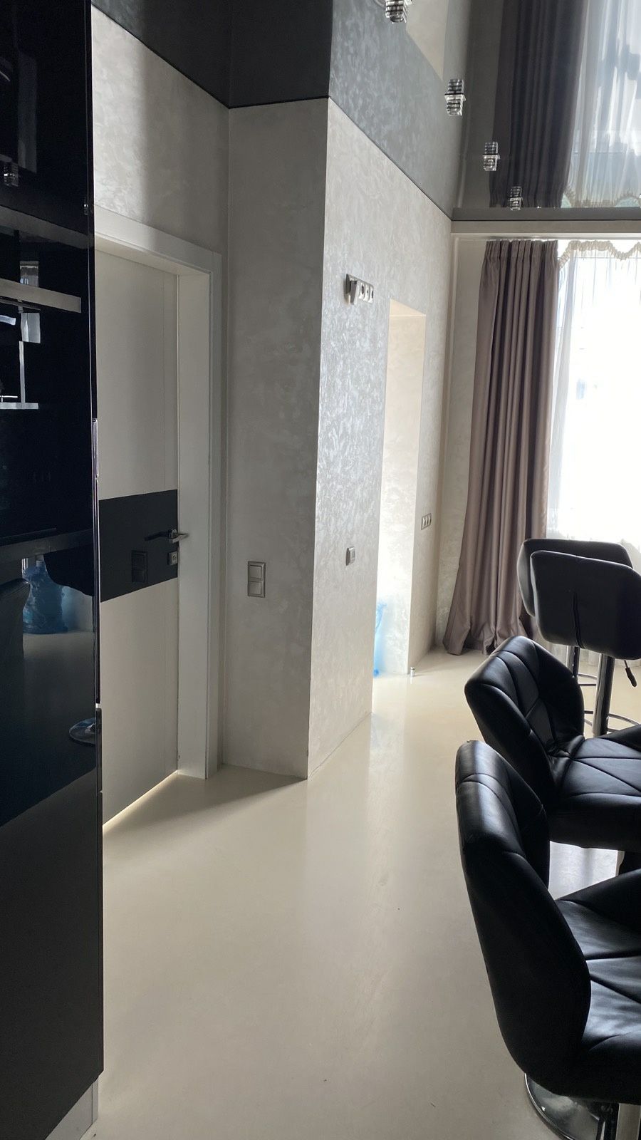 До продажу пропонується простора та стильна 1-кімнатна квартира площею 72,1 м² у житловому комплексі преміум-класу за адресою: бульвар Лесі Українки, 7а. Помешкання розташоване на 6 поверсі сучасного 23-поверхового будинку, з вікон якого відкривається чудовий вид на спортивний комплекс «Олімпійський».