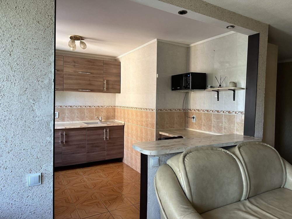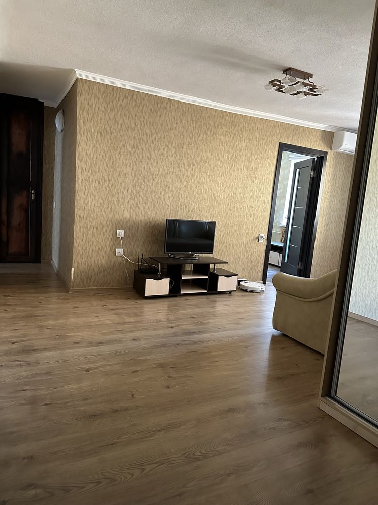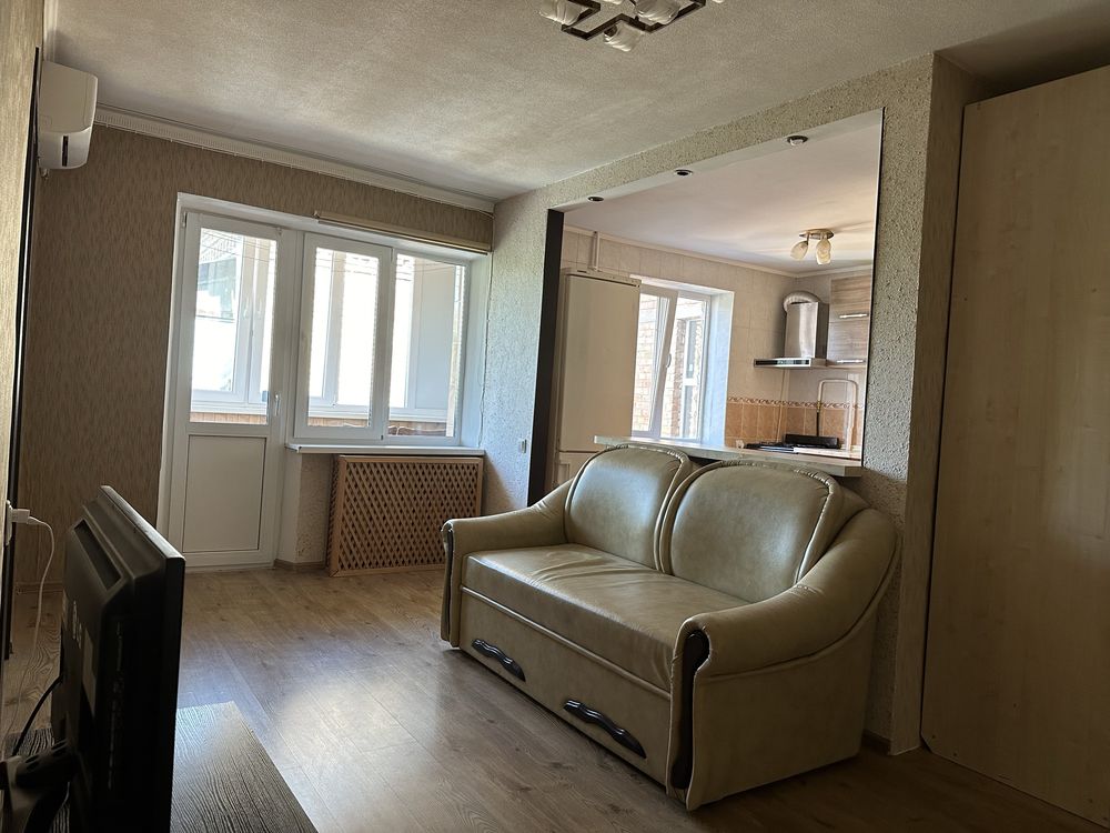 Квартира має продумане двостороннє планування: сучасна кухня-студія об'єднана з вітальнею, що створює відкритий простір для сімейного дозвілля, а дві окремі спальні гарантують приватність. В оселі є засклений балкон та зручна кладова для зберігання речей. Стан квартири чудовий — вона світла, чиста та повністю укомплектована всім необхідним, що дозволяє новим власникам заїхати та жити без додаткових турбот. Безпосередньо в будинку розташовані продуктові та побутові крамниці, а у дворі завжди є місце для безкоштовного паркування автомобіля, хоча лише за дві хвилини пішки доступна і платна парковка під охороною.