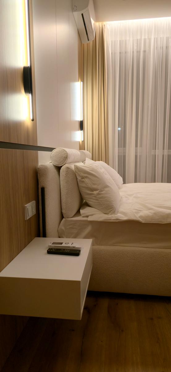 Планування квартири продумане до дрібниць: простора кухня-студія для відпочинку та прийому гостей, окрема затишна спальня, містка гардеробна кімната та сучасний санвузол із великою душовою кабіною. В оселі виконано капітальний ремонт із використанням будівельних матеріалів найвищої якості. Інтер’єр укомплектований меблями преміального сегмента, виготовленими під замовлення, та повною лінійкою побутової техніки від провідних світових виробників. Високий поверх у поєднанні з панорамним склінням забезпечує максимум природного світла та тишу в самому центрі мегаполіса.