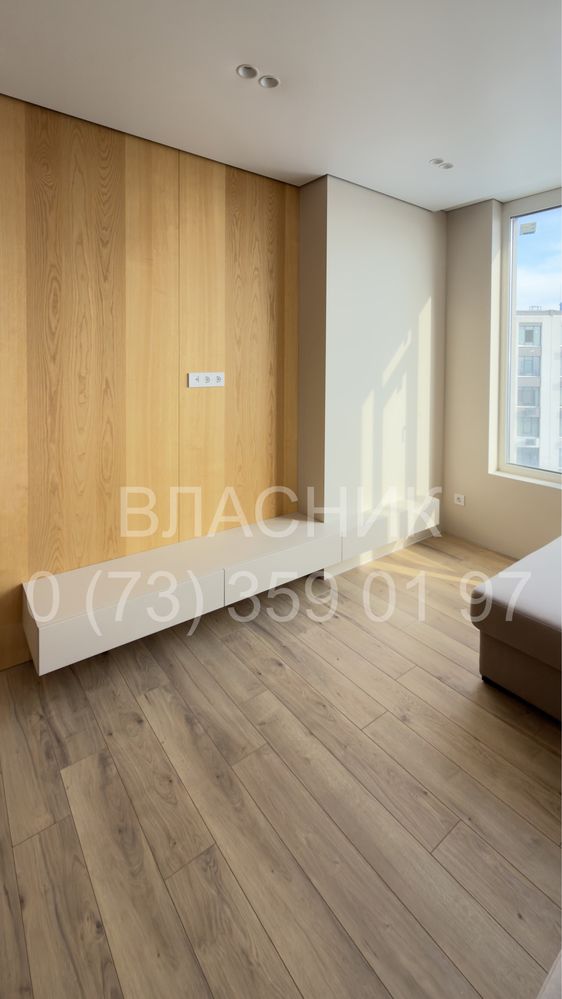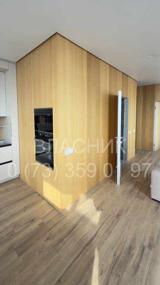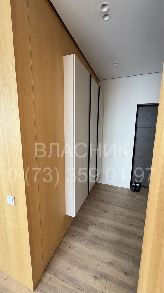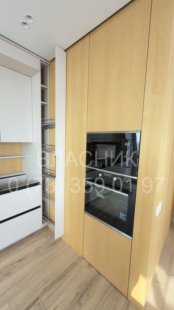 В квартирі виконано високоякісний ремонт із використанням преміальних матеріалів: стіни фарбовані та оздоблені панелями зі шпону натурального ясеня, встановлені двері прихованого монтажу та натяжна стеля з тіньовим профілем і затишною LED-підсвіткою. Продумане планування включає велику кухню-вітальню, окрему спальню з ліжком 1800х2000 мм, затишну лоджію та окрему гардеробну-пральну кімнату. Всі меблі виготовлені під замовлення з фурнітурою Blum, встановлена техніка Electrolux, а санвузол оздоблений трендовою плиткою 120х60 см із душем прихованого монтажу. Оселя майже повністю готова до життя, має систему очищення води та закладені траси під кондиціонери, що дозволяє новому власнику фіналізувати інтер'єр під власні потреби без капітальних робіт.