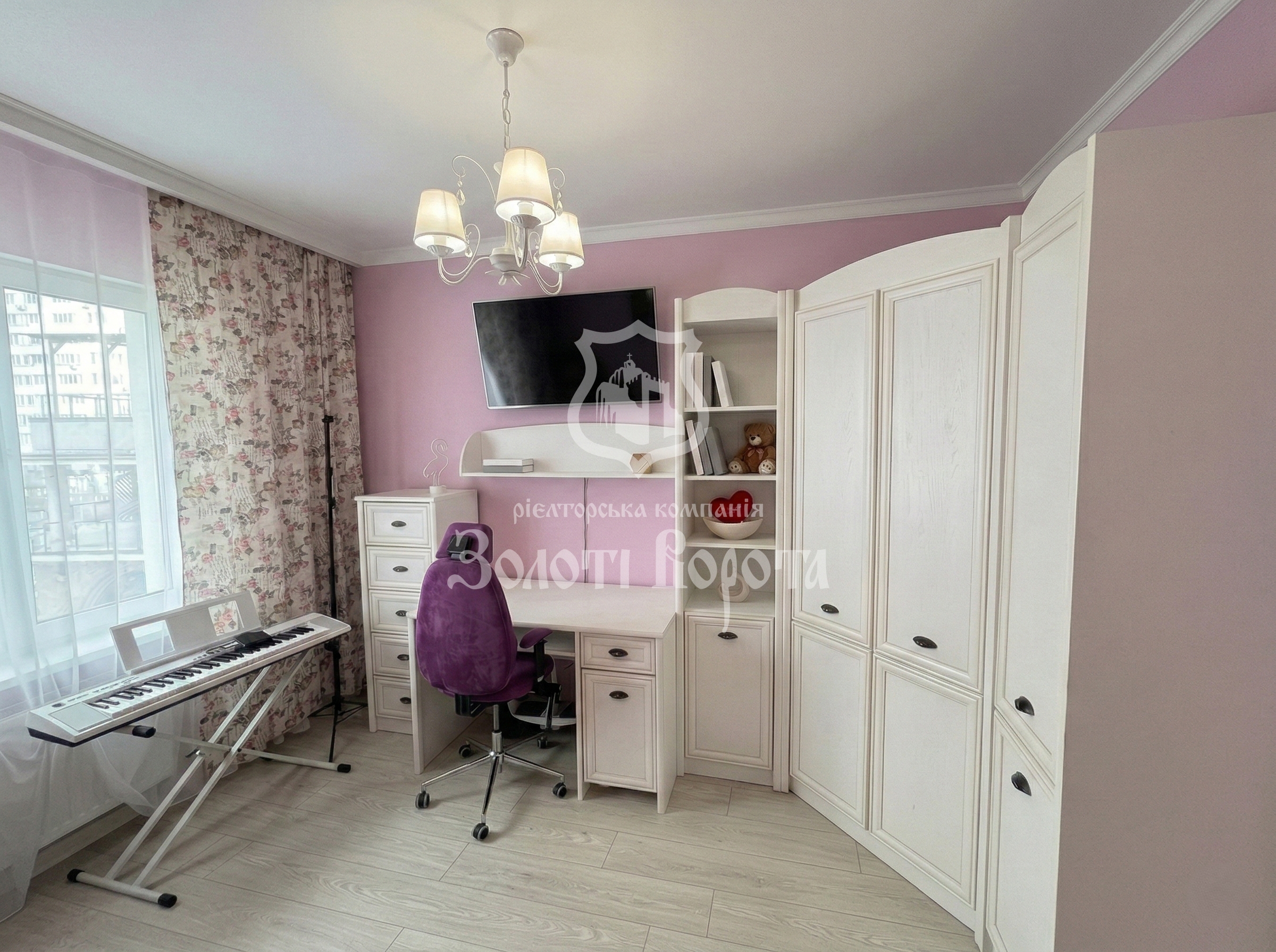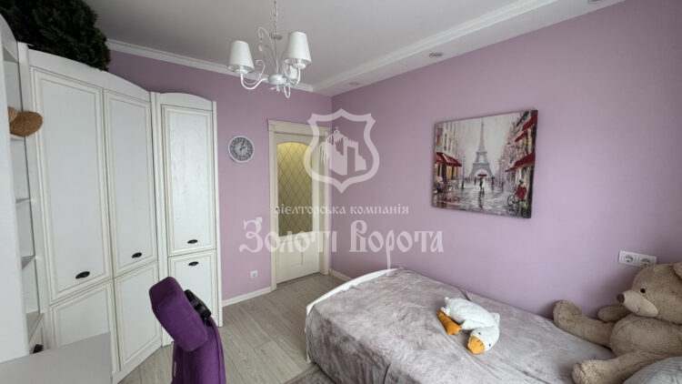 Планування ідеально продумане для великої родини: затишна майстер-спальня з власним санвузлом, дві світлі дитячі кімнати, простора кухня-вітальня для спільних вечорів, загальний санвузол та облаштоване робоче місце. Додатковим бонусом є наявність тамбура на дві квартири для зберігання велосипедів чи дитячих візочків в оточенні привітних сусідів.