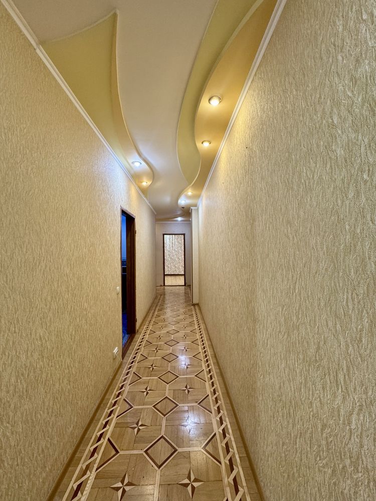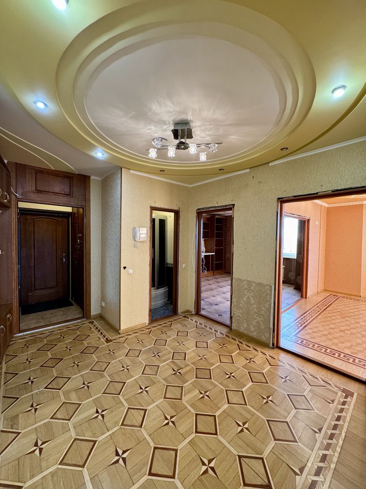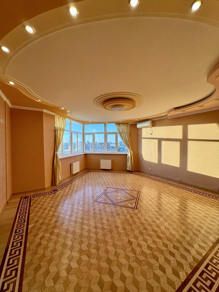 Квартира вирізняється вишуканою базовою обробкою: встановлені броньовані дубові двері з надійною замковою системою, а підлога оздоблена художнім інкрустованим паркетом із цінних порід деревини. Багаторівневі гіпсокартонові стелі з інтегрованим точковим освітленням підкреслюють об’єм та простір приміщень. Планування є ідеальним для великої родини: три окремі світлі кімнати, величезна кухня (16,3 м²), два санвузли, засклений балкон та просторий коридор із нішею під гардеробну. Оселя пропонується без меблів, що є чудовою можливістю втілити власний дизайнерський інтер’єр у вже підготовленому якісному просторі.