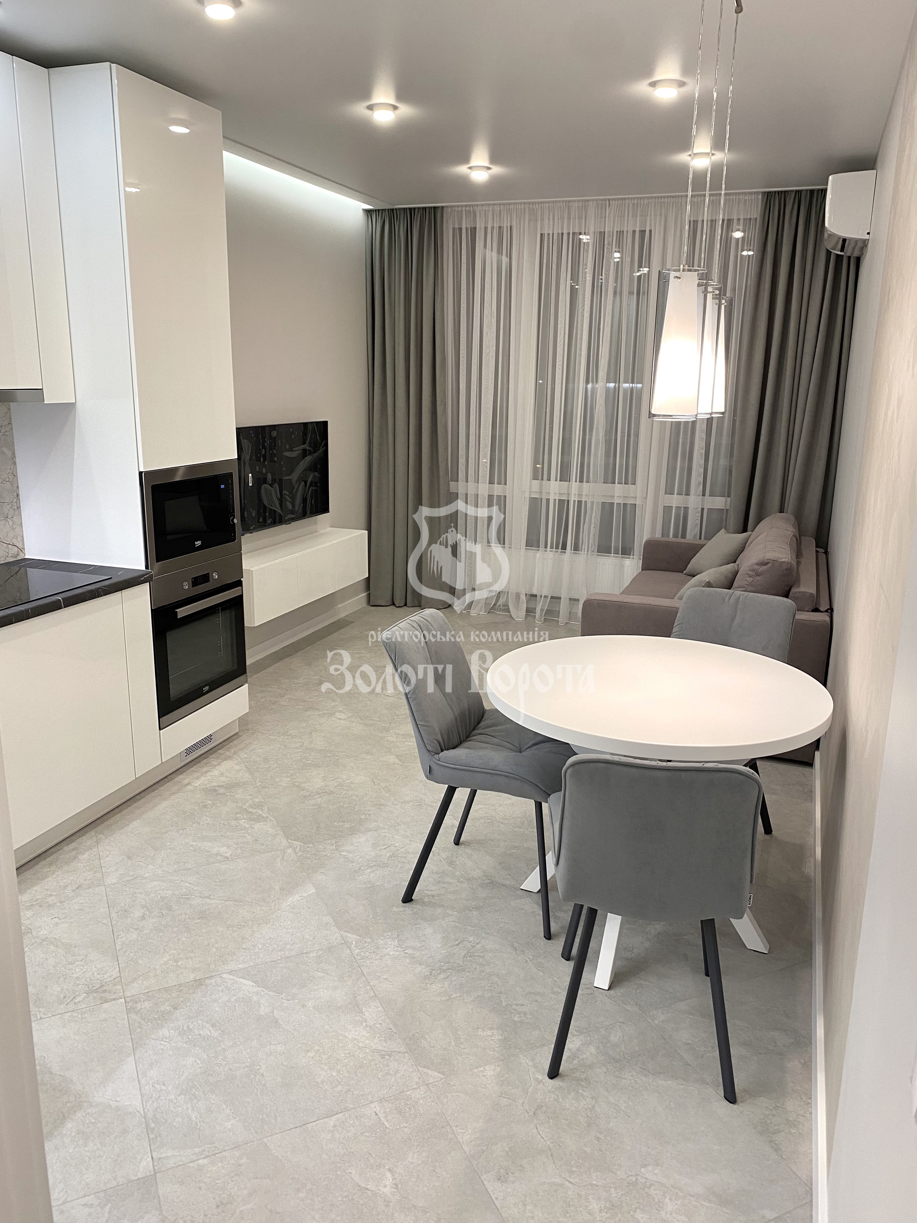 В квартирі виконано унікальне дизайнерське перепланування та свіжий якісний ремонт, де кожен квадратний метр використаний максимально ефективно. Інтер’єр наповнений світлом і затишком, укомплектований стильними меблями, зокрема двома диванами «Брест», та дорогою вбудованою технікою. Для Вашого комфорту встановлено два інверторних кондиціонери NeoClima та два ультратонких телевізори.