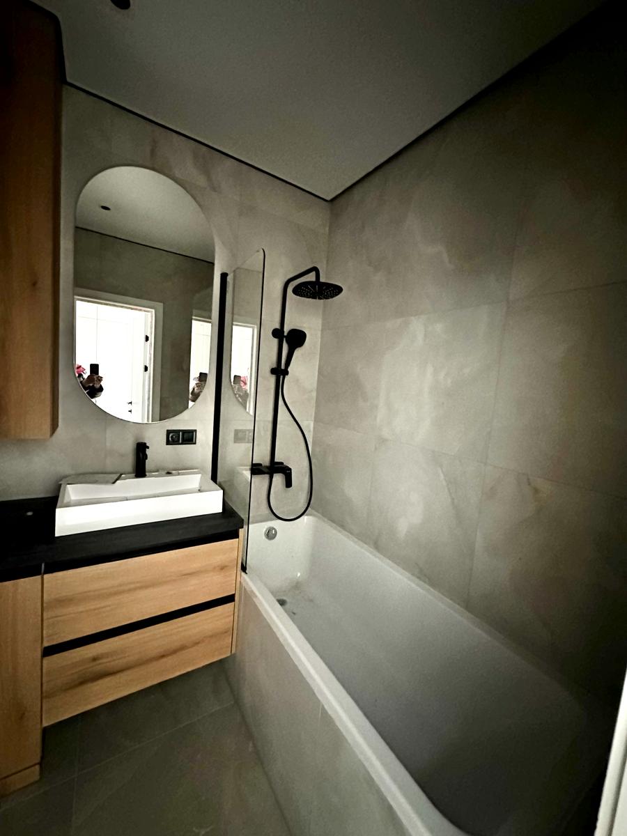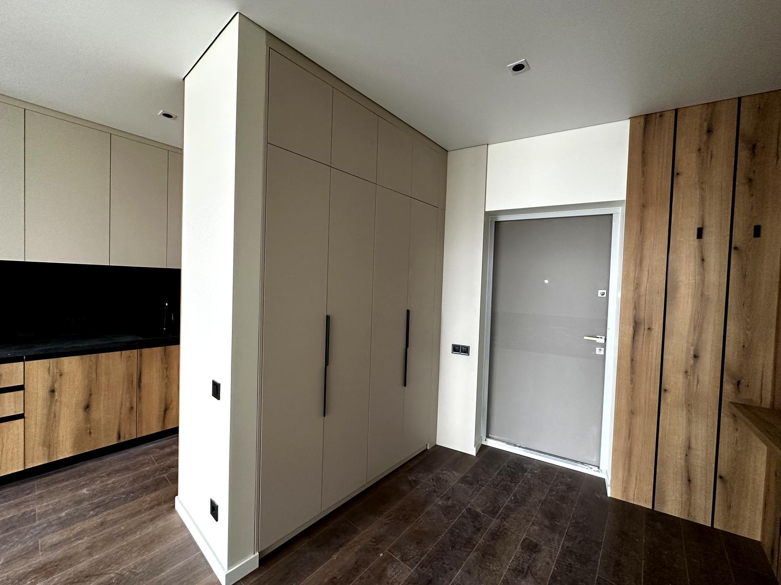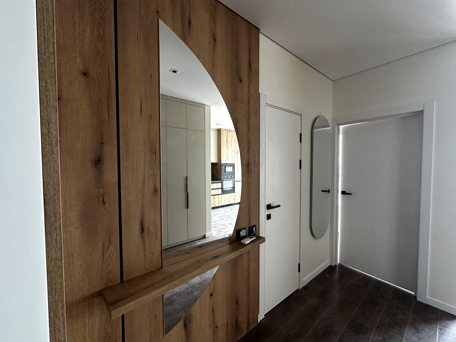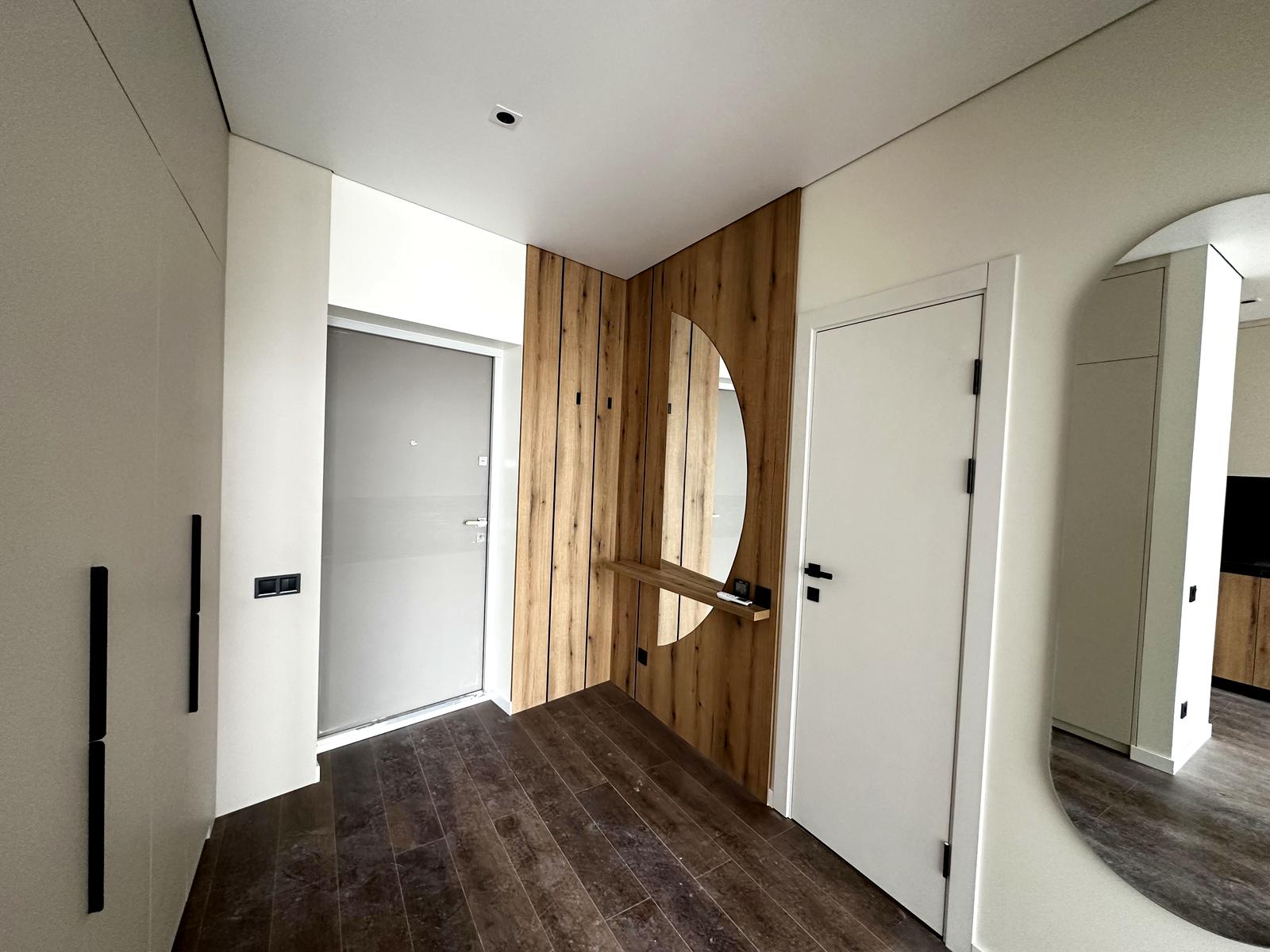 В оселі щойно завершено новий якісний ремонт — вона повністю готова до заселення та не потребує жодних додаткових вкладень. Планування світле та функціональне, а панорамні вікна наповнюють квартиру природним світлом протягом усього дня. Квартира максимально укомплектована італійською технікою преміум-класу Fabiano: встановлені пральна та сушильна машини, широка посудомийна машина (60 см), вбудований холодильник, духова шафа, мікрохвильова піч, варильна поверхня та потужна витяжка. Також встановлено два кондиціонери Cooper&Hunter (у спальні та кухні-вітальні) та сучасний телевізор.