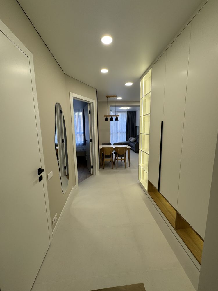 Житло повністю готове до заселення та не потребує жодних додаткових витрат чи часу на очікування, оскільки в оселі виконано новий якісний ремонт у сучасному стилі. Інтер’єр, витриманий у стриманих елегантних відтінках, виглядає дорого та актуально, що гарантує його естетичну цінність на довгі роки. Квартира облаштована стильними міжкімнатними дверима, якісним підлоговим покриттям, вбудованою кухнею з необхідною технікою, сучасними меблями та місткими шафами для зберігання речей. Особливу увагу приділено деталям: у помешканні встановлено сантехніку та освітлення преміальної якості, завдяки чому простір поєднує в собі комфорт, ергономічність та стиль.