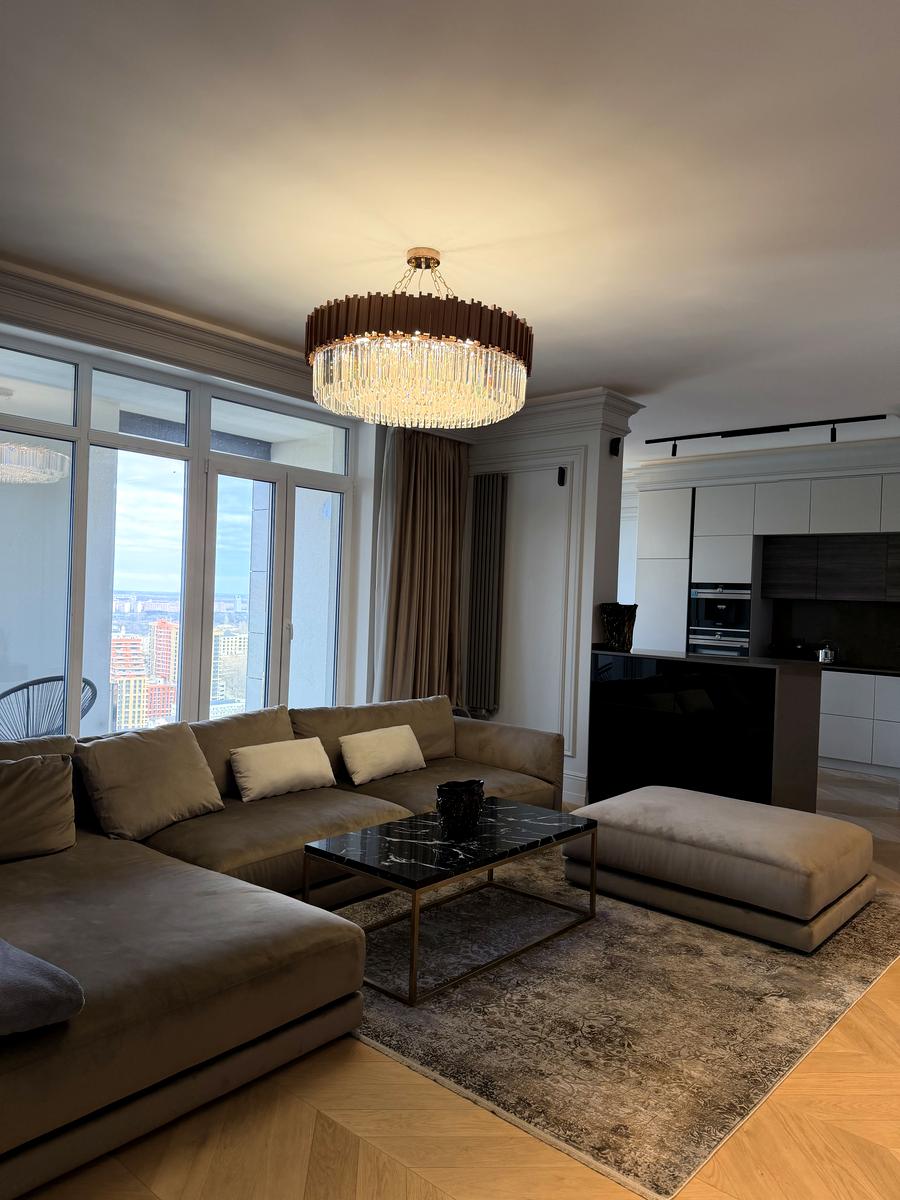 Пропонується до продажу розкішна 2-кімнатна квартира загальною площею 120,4 м², розташована за адресою: вулиця Січових Стрільців, 44-А, на 15-му поверсі 17-поверхового будинку.