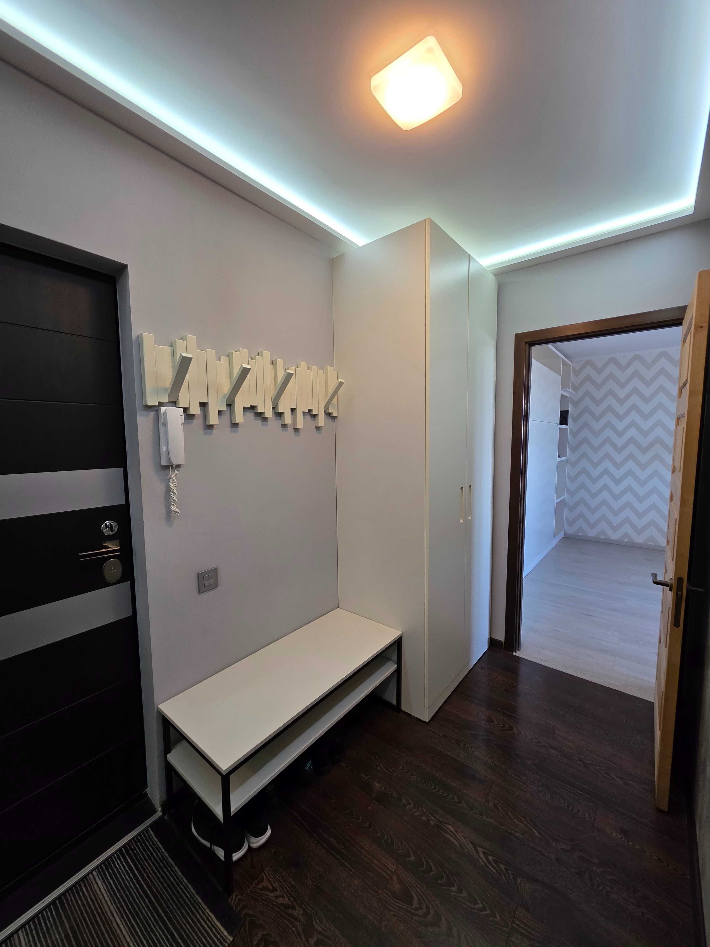 У 2017 році в помешканні було виконано капітальний авторський ремонт, де кожна деталь продумана для максимального комфорту: квартира була утеплена зовні мінеральною ватою (15 см), завдяки чому вона надзвичайно тепла і взимку потребує мінімального опалення. Житло укомплектоване надійними меблями та технікою в чудовому стані: у спальні встановлено ліжко з ортопедичним матрацом Veneto, розкладний диван, великий комод та кондиціонер Daikin. Лоджія, утеплена з обох боків та обладнана теплою підлогою, перетворена на повноцінний робочий кабінет із меблями для зберігання документів та речей. Кухня є функціональною та сучасною, оснащеною вбудованою варильною поверхнею, духовою шафою і мікрохвильовою піччю Whirlpool, а також холодильником Liebherr; для зручності передбачено обідню зону біля вікна та підігрів підлоги. Суміщений санвузол обладнаний ванною, бойлером та пральною машиною LG, придбаною у 2022 році. Додаткову безпеку забезпечують нові броньовані двері та домофон, а в коридорі облаштовано дві місткі шафи.