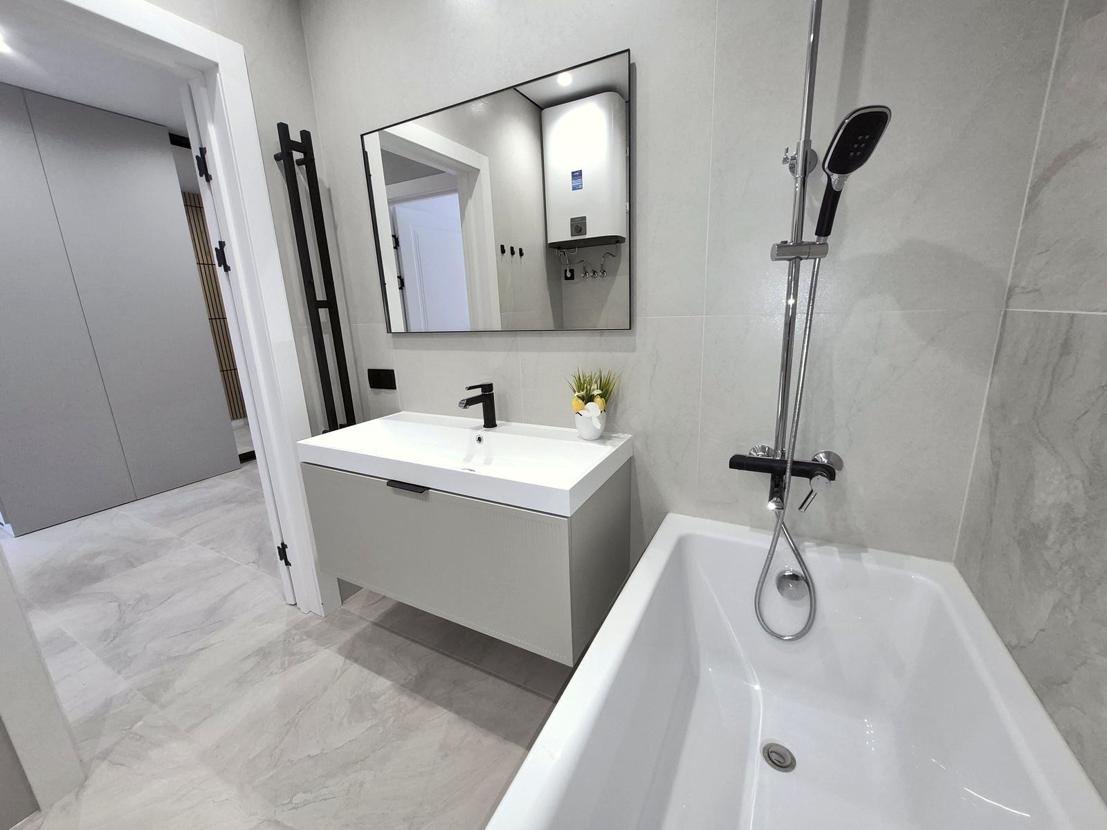 В оселі виконано високоякісний дизайнерський ремонт із раціональним зонуванням простору, що включає велику кількість місць для зберігання та окрему містку гардеробну кімнату. Квартира повністю автономна та підготовлена до сучасних викликів: встановлено систему резервного живлення від станції Ecoflow, а комфортний мікроклімат забезпечують два контури теплої підлоги та інверторний кондиціонер, що працює на тепло та холод. Житло укомплектоване преміальною побутовою технікою, серед якої телевізор QLED Samsung 55 дюймів, індукційна варильна поверхня, духова шафа Electrolux, посудомийна машина, прально-сушильна машина Gorenje, холодильник із системою No Frost від Indesit, вбудована мікрохвильова піч Samsung та об’ємний бойлер.