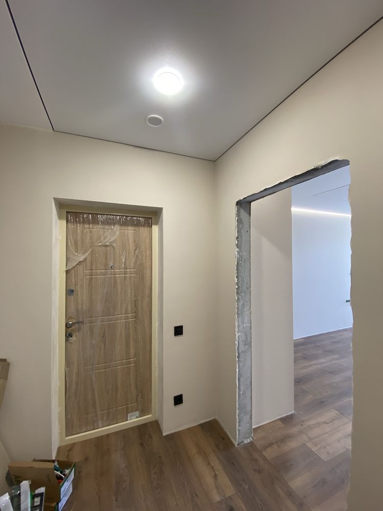 Ремонт виконаний з використанням преміальних рішень: стіни ідеально вирівняні та вкриті німецькою фарбою по шпалерах під фарбування, по всій квартирі встановлено професійну звукоізоляцію, а натяжна стеля з тіньовим профілем та ефектом «паріння» додає інтер’єру особливої естетики. На підлозі покладено вологостійкий ламінат, встановлені надійні німецька сантехніка та інсталяція, а широка ванна стане вашим улюбленим місцем для релаксу. Усі комунікації продумані до дрібниць: від якісної розводки електрики на окремий щиток до закладок під кондиціонер, домофон та інтернет.