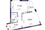 Планування типу 1R6 є дуже раціональним: воно включає окрему житлову кімнату площею 17 м², велику кухню-вітальню на 19 м² та лоджію. Стан квартири — після будівельників, що дає змогу реалізувати індивідуальний дизайн-проєкт. В оселі вже встановлені лічильники на воду, електроенергію та опалення.