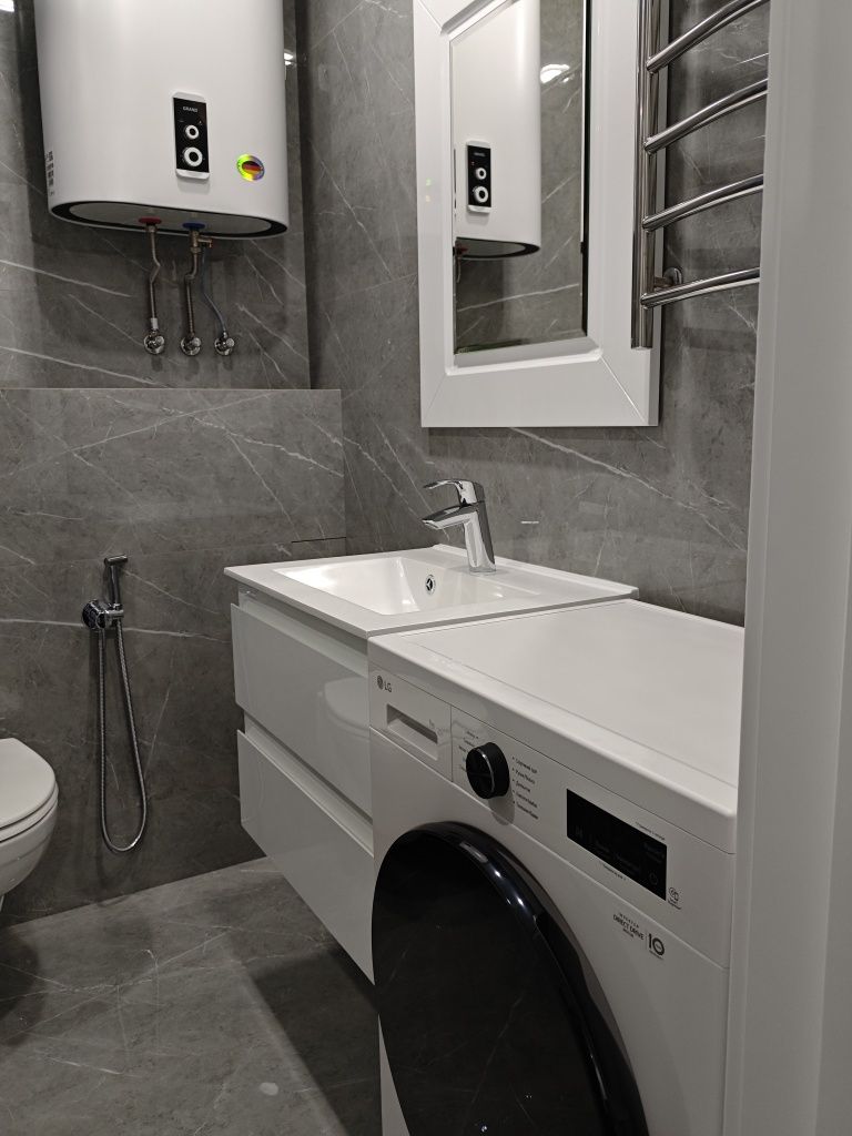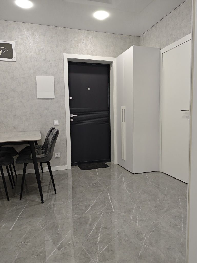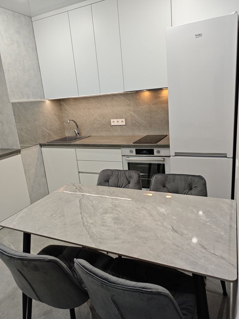 Особливу увагу приділено комплектації та технічному оснащенню. Кухня обладнана сучасною фурнітурою та вбудованою технікою від провідних брендів, зокрема витяжкою Elica, варильною поверхнею та духовою шафою. Санвузол площею 4.2 м² є втіленням комфорту: тут встановлена якісна іспанська та німецька сантехніка, змішувачі Grohe, консольний унітаз Kolo та містка ванна. За безперебійне гаряче водопостачання відповідає сучасний бойлер на 80 літрів із «сухими» тенами. Квартира повністю мебльована та готова до заселення — вам залишається лише перевезти власні речі. Це ідеальний варіант для тих, хто цінує технологічність, естетику та комфорт нового будівництва.