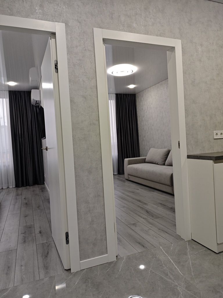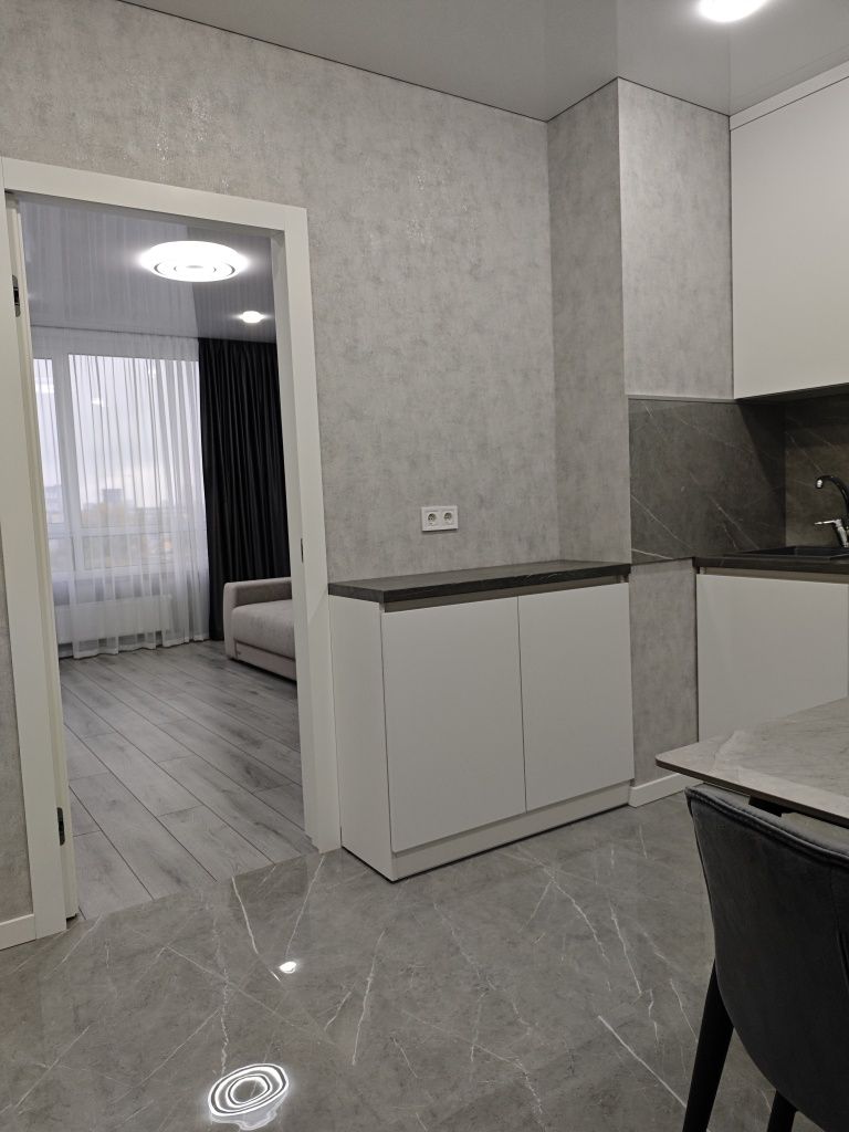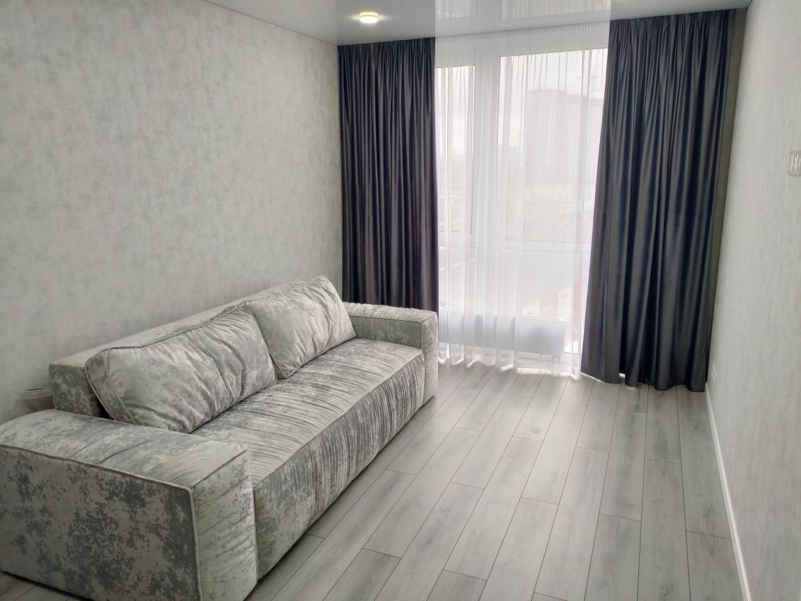 Пропонується до продажу стильна двокімнатна квартира площею 48 м² у сучасному житловому комплексі бізнес-класу «Great», розташованому на першій лінії Дніпра. Будинок вже зданий, активно заселяється та має сучасну архітектуру з панорамним склінням. Оселя розташована на комфортному поверсі, де працюють 5 швидкісних ліфтів, а вікна виходять на затишну, не сонячну сторону, що гарантує приємний мікроклімат та захопливі краєвиди без зайвого перегріву приміщень. Планування максимально функціональне: дві повністю окремі кімнати (15 м² та 17 м²) та світла кухня площею 11 м². Ремонт виконано за авторським проєктом із використанням преміальних матеріалів: натяжні стелі з тіньовим профілем, великоформатний керамограніт (120х60 см) та німецький ламінат. Встановлено інверторний кондиціонер, захист на електрику та проведено енергонезалежний оптоволоконний інтернет.