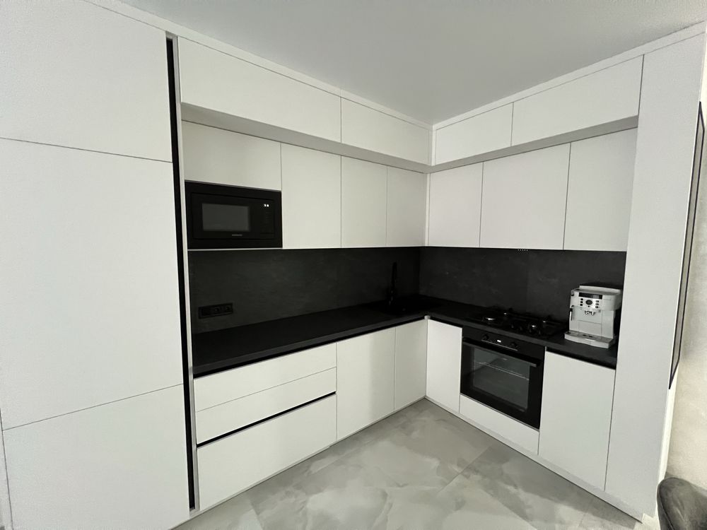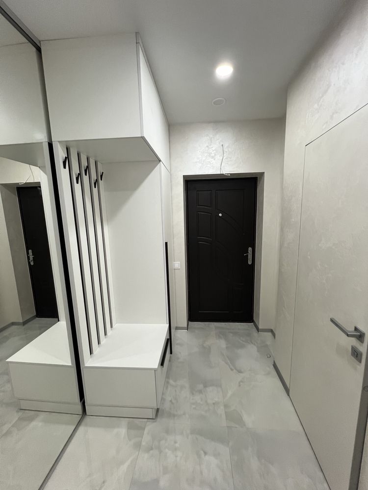 Планування квартири розроблено для максимального затишку: простора кухня-студія площею 17 м² із великою робочою поверхнею, дизайнерським диваном та плазмовою панеллю ідеально підходить для прийому гостей. Спальня облаштована великим ліжком розміром 1.80х2.0 м, а продуманий простір дозволяє за потреби встановити дитяче ліжечко. Комфорт у холодну пору року забезпечує тепла підлога в зонах кухні, коридору та ванної кімнати. Для зберігання речей передбачено місткий гардероб, де також розміщено газове обладнання для безперебійної подачі гарячої води.