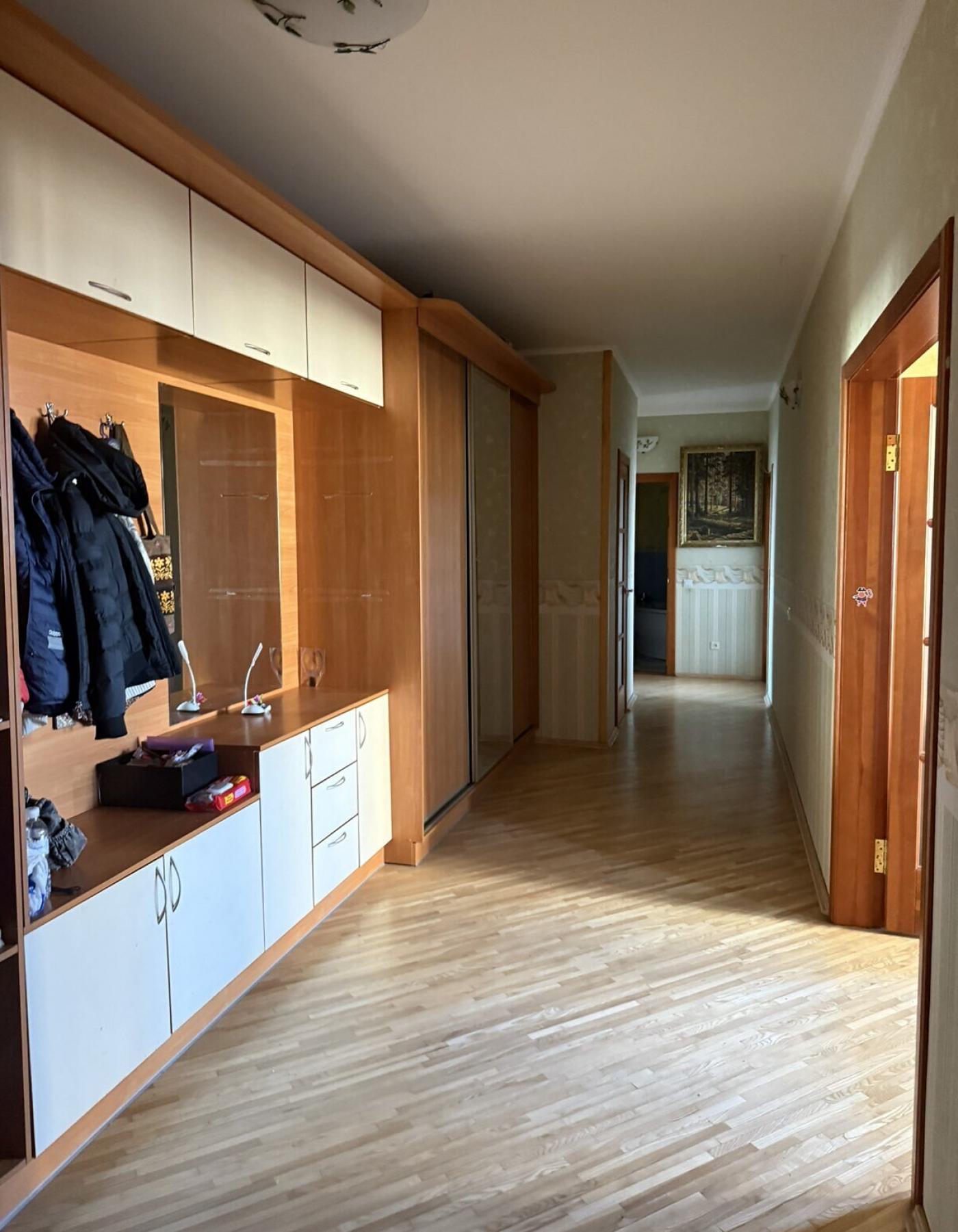 Пропонується до продажу капітальна трикімнатна квартира загальною площею 110 м², розташована на 12-му поверсі престижного цегляного будинку 2000 року побудови (індивідуальний проєкт). Оселя вирізняється значними масштабами: житлова площа складає 90 м², а простора кухня площею 20 м² стане ідеальним місцем для родинних вечерь. У квартирі виконано якісний ремонт, де особливу увагу приділено екологічності — на підлозі покладено натуральний дерев’яний паркет, що створює атмосферу затишку та тепла. Для максимальної енергоефективності стіни помешкання додатково утеплені зовні пінопластом товщиною 10 см. Важливою перевагою для висотного будинку є наявність електроплит, що відповідає сучасним стандартам безпеки. Оселя повністю укомплектована всіма необхідними меблями та побутовою технікою і готова до комфортного проживання одразу після оформлення угоди.
