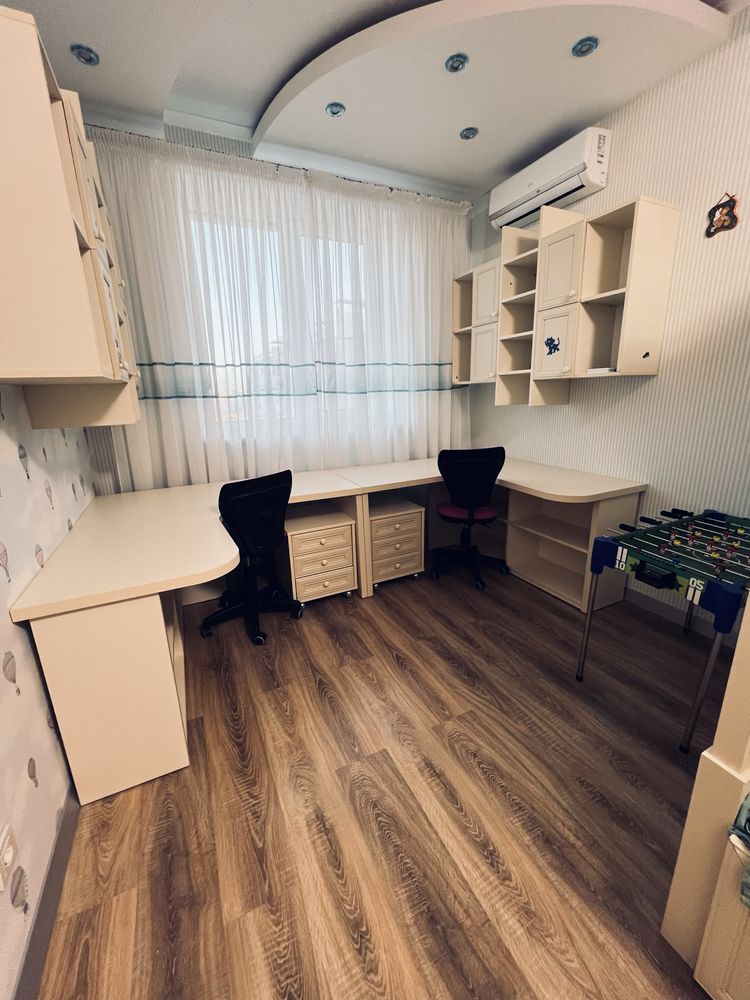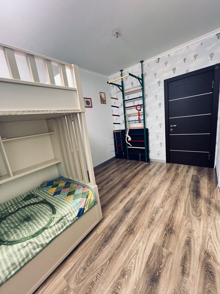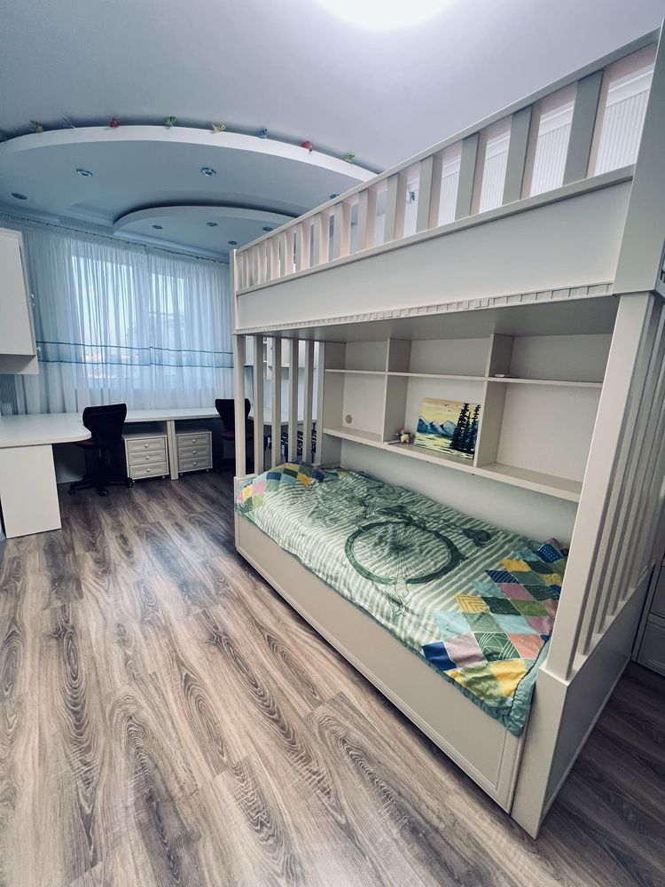 Пропонується до продажу простора дворівнева квартира загальною площею 106 м², розташована на 10-му поверсі сучасного цегляного будинку в одному з найпопулярніших житлових комплексів Софіївської Борщагівки — ЖК «Софія» (будинок 2014 року). Оселя повністю готова до заселення: ремонт, меблі та техніка вже чекають на нових власників. Ключовою перевагою є індивідуальне газове опалення (двоконтурний котел), що забезпечує повну автономність та мінімальні витрати на комунальні платежі за житловими тарифами. Планування ідеально розмежовує зони відпочинку та активності. На першому рівні розташована велика кухня-вітальня, санвузол та практична комора. Другий рівень включає три окремі спальні, дві гардеробні кімнати та додатковий санвузол. Будинок обслуговується власною управляючою компанією, що гарантує чистоту та порядок на території.