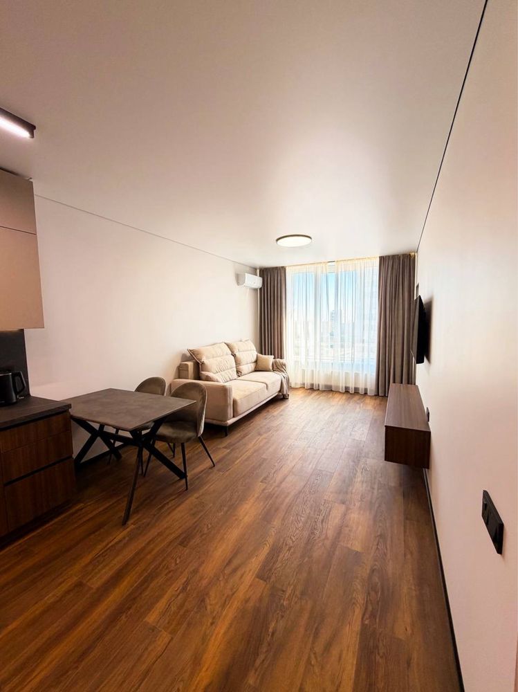 Це ексклюзивна пропозиція для тих, хто обирає статус, сучасні технології та безкомпромісну естетику. Квартира площею 44 м² розташована на видовому 19-му поверсі 25-поверхового монолітно-каркасного будинку, зведеного у 2024 році лідером ринку Stolitsa Group за індивідуальним спецпроєктом. Головна перевага лота — раціональне планування формату «євродвійка» з грандіозною кухнею-вітальнею площею 25 м² та окремою затишною спальнею. В оселі виконано авторський дизайнерський ремонт із використанням преміальних матеріалів, де кожен сантиметр продумано до дрібниць. Квартира абсолютно нова, у ній ніхто не проживав, а повна комплектація топовою побутовою технікою та меблями, виготовленими на замовлення, дозволяє заїхати та насолоджуватися життям у день покупки.