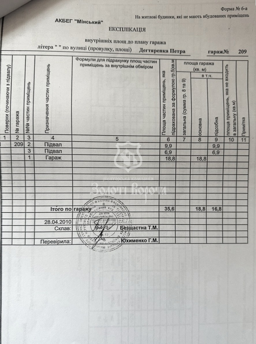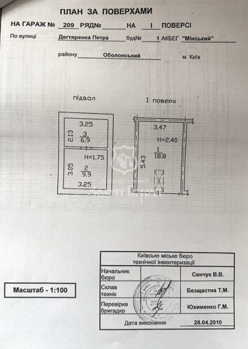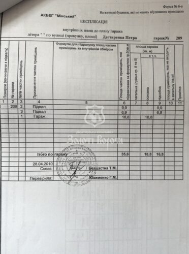 Пропонується до продажу капітальний приватизований гараж загальною площею 35,6 м², розташований у гаражному кооперативі в Оболонському районі за адресою: вулиця Сім’ї Кульженків, 1.