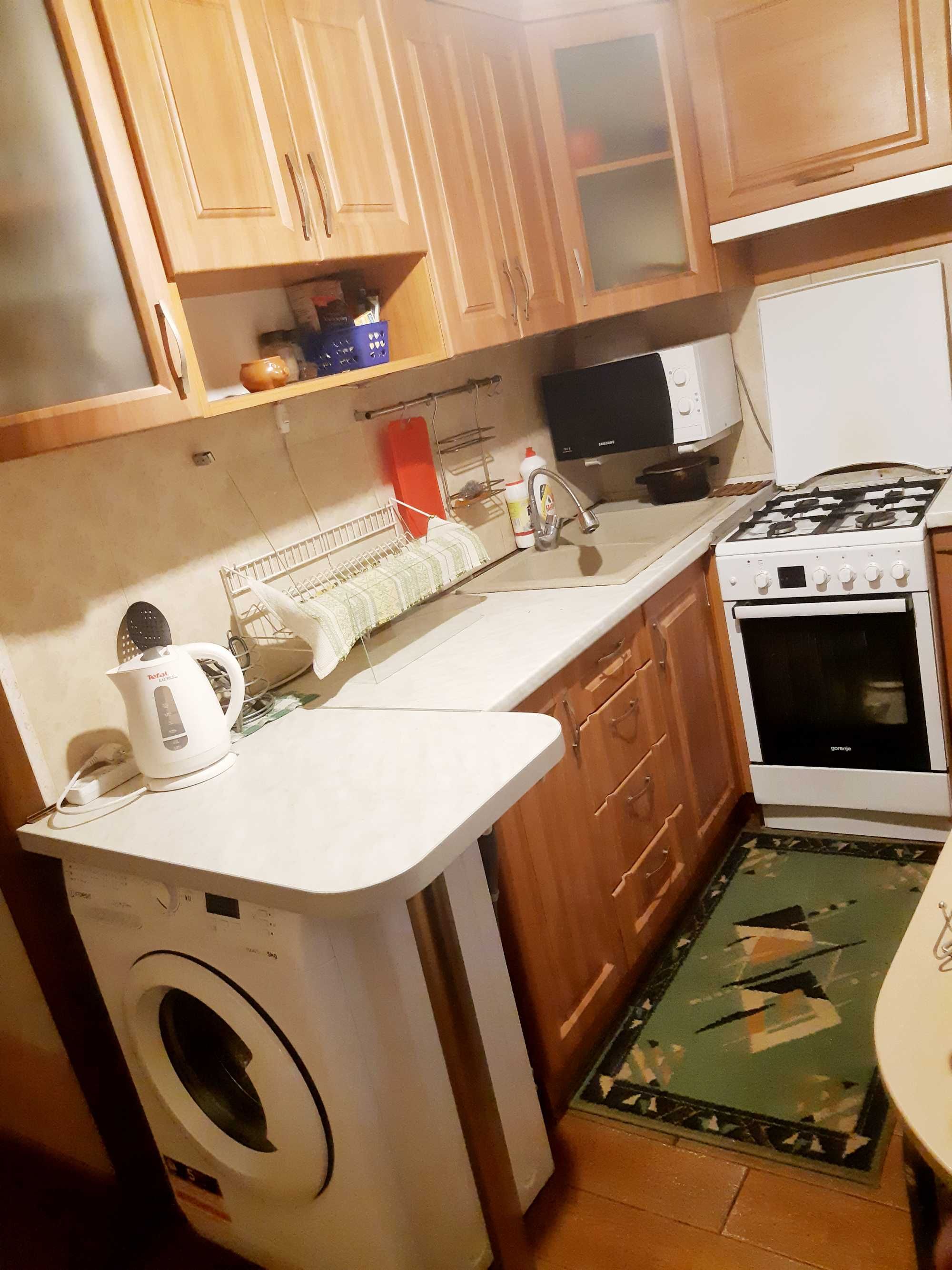 Цей об’єкт площею 45 м² розташований на ідеальному другому поверсі п’ятиповерхової цегляної «хрущовки» серії 1-438 (1962 року побудови), яка пройшла капітальне зовнішнє утеплення пінопластом та оновлення під’їздів. Раціональне планування з двома роздільними кімнатами, високою стелею 2.7 м та окремим гардеробом (2.5 м²) доповнене якісним косметичним ремонтом: замінено електропроводку та труби, встановлено натяжні стелі та шпоновані двері з масиву дерева. Кухня площею 7 м² повністю оздоблена сучасною плиткою, обладнана вбудованими меблями, газовою плитою та всією необхідною технікою, а наявність бойлера та лічильників на всі комунікації гарантує автономність і низькі витрати на утримання. Двостороннє розташування вікон у тихі двори та засклений балкон забезпечують тишу та відмінну інсоляцію житлового простору.