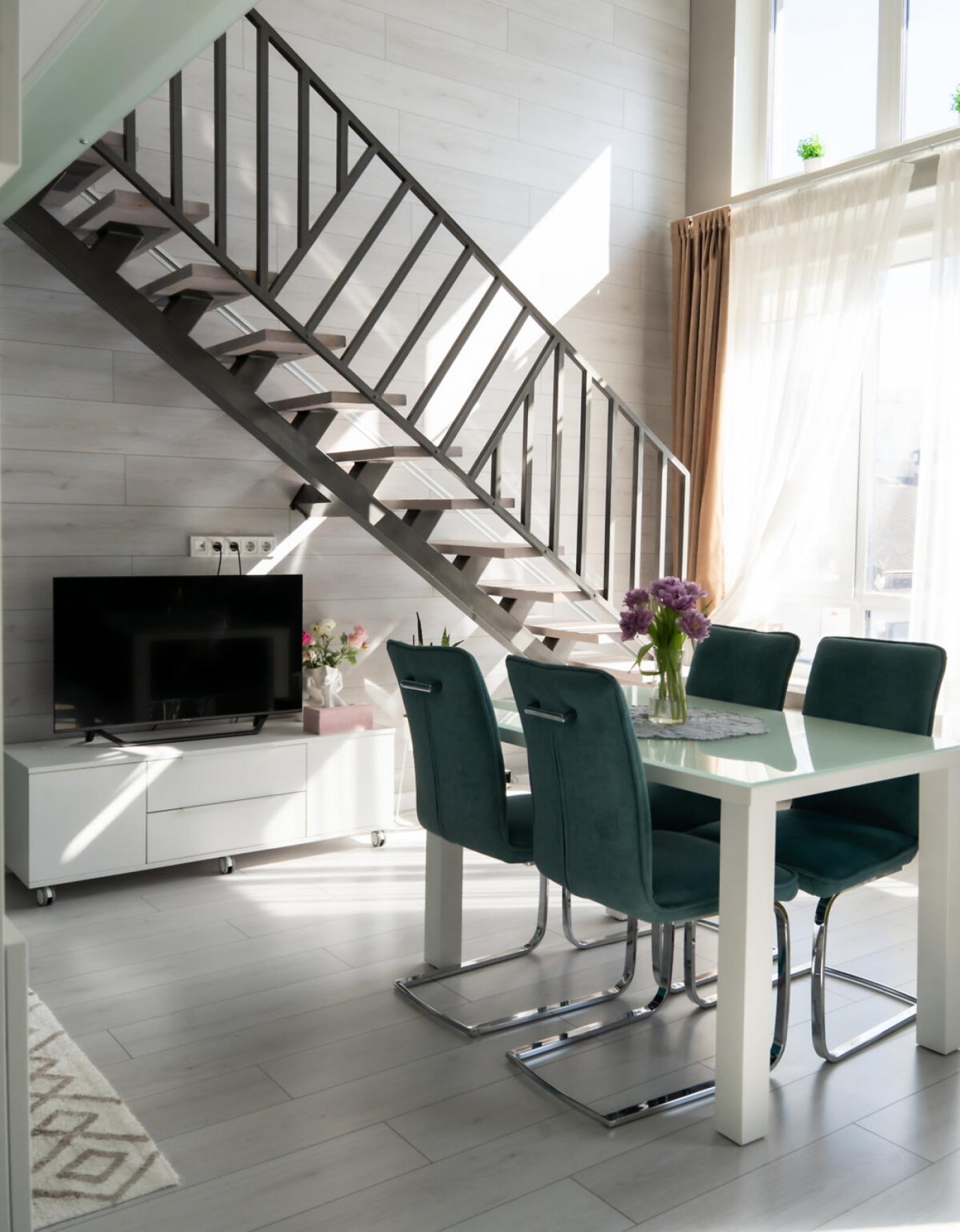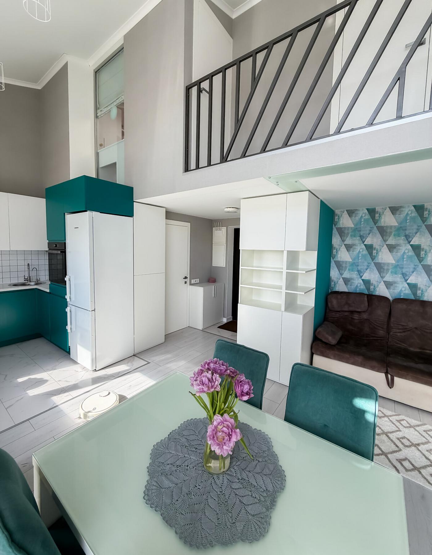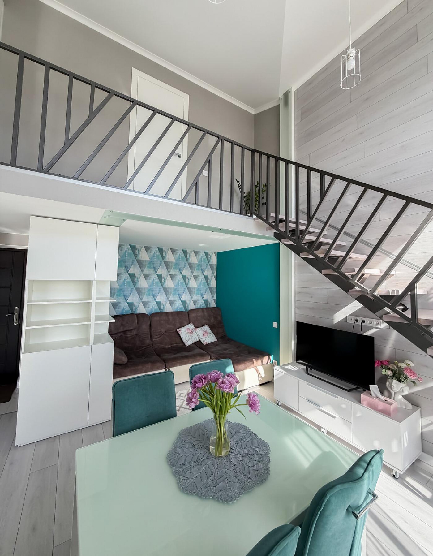 Цей лот на вулиці Лісківській, 23 — об’єкт для тих, хто шукає простір, а не типову «коробку». Квартира загальною площею 56 м² розташована на 9-му поверсі будинку серії АППС (модифікована серія 1990-х років), де за рахунок технічного рівня було реалізовано повноцінний дворівневий простір. Архітектурне рішення з другим світлом створює неймовірне відчуття об’єму та наповнює оселю природним освітленням. Важливою технічною перевагою є використання сучасних електроплит та посиленої мідної електропроводки, що характерно для будинків цієї серії та гарантує високу пожежну безпеку при експлуатації потужної побутової техніки. Планування чітко розділене на зони: перший рівень — це відкрита кухня-вітальня з обідньою зоною та вбудованою технікою, а другий — приватна територія зі спальнею та додатковою кімнатою, яка ідеально підійде під дитячу або кабінет. Об’єкт пройшов капітальний дизайнерський ремонт із заміною комунікацій, встановленням сходів на надійному металевому каркасі та повною комплектацією меблями і преміальною технікою, включаючи сушильну машину та кондиціонер.