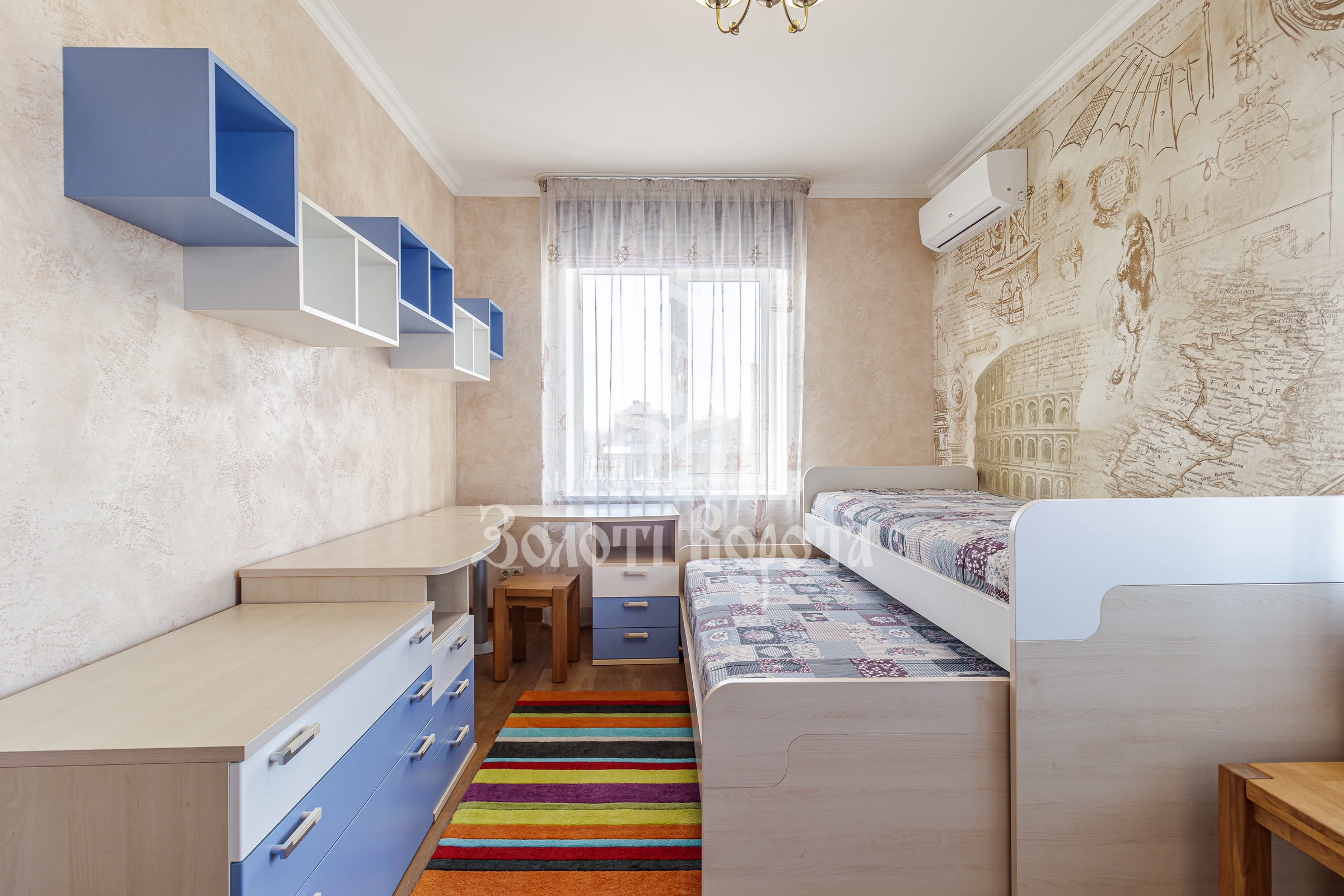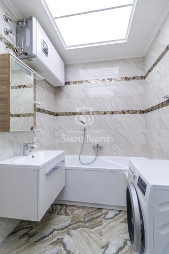 Інтер’єр повністю укомплектований італійськими меблями та технікою преміумкласу брендів Siemens і Bosch. У кожній кімнаті встановлені інверторні кондиціонери Cooper&Hunter. Кухня оснащена всім необхідним: посудомийна машина, газова поверхня, духова шафа, система очищення води, витяжка. У квартирі також залишаються холодильник, пральна машина та телевізори — повна комплектація для комфортного проживання без додаткових вкладень.