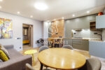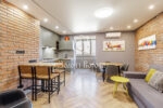 В оздобленні використані лише високоякісні матеріали: стіни професійно пофарбовані, підлога в передпокої, санвузлах та на балконі викладена плиткою з системою обігріву, а в житлових кімнатах покладено зносостійкий італійський ламінат. Комфортний клімат забезпечують інверторні кондиціонери та сучасне багаторівневе освітлення.
