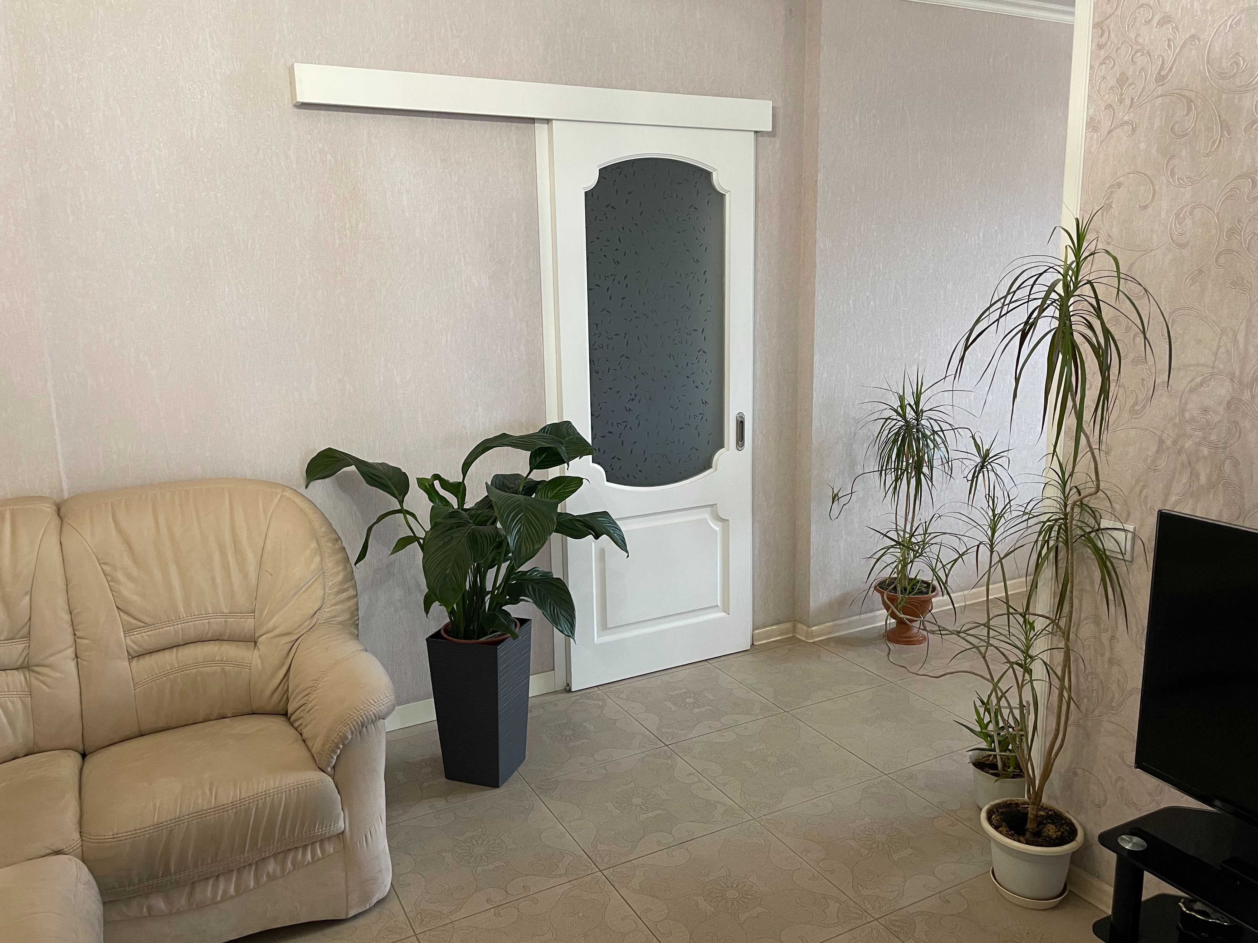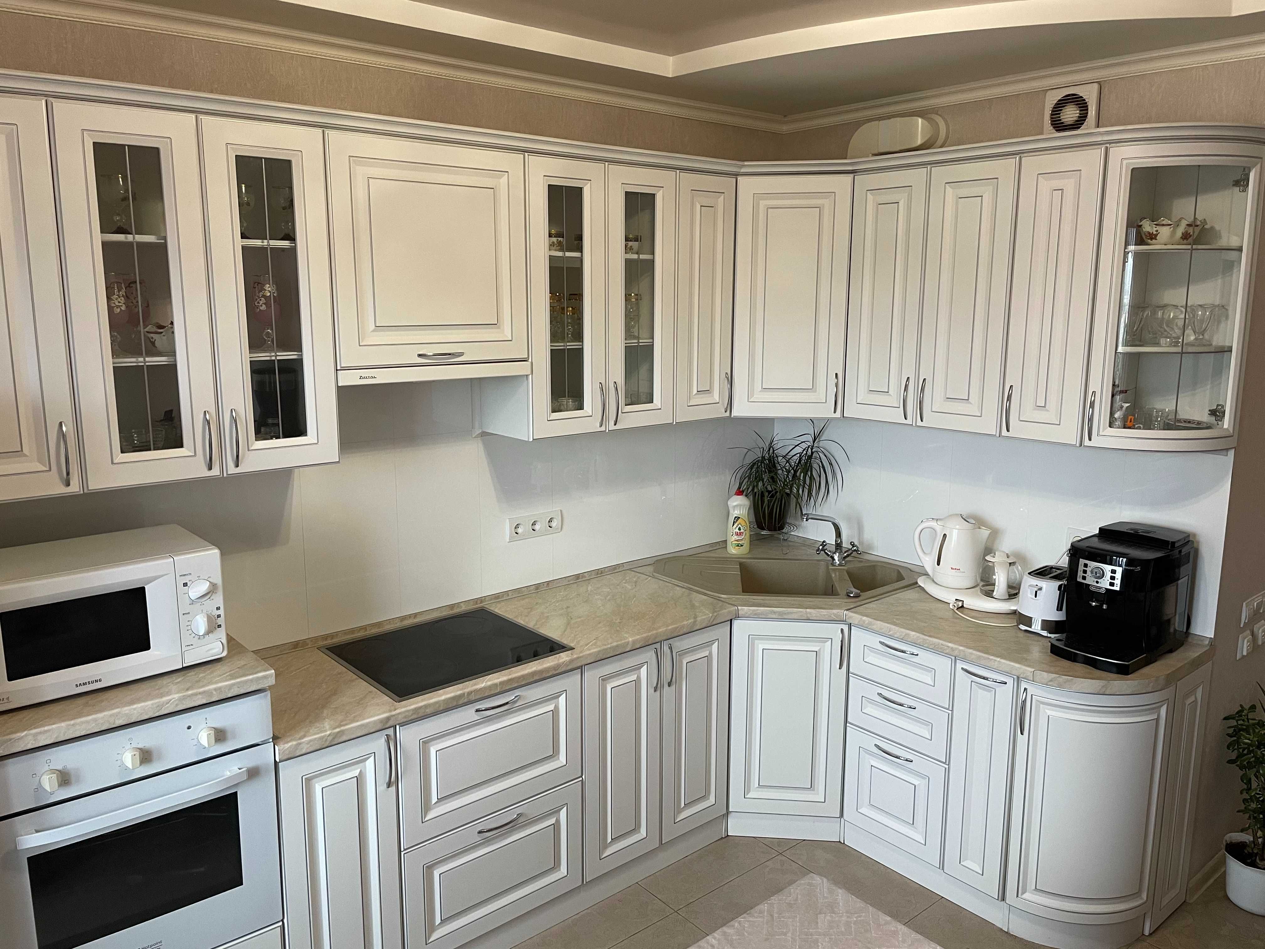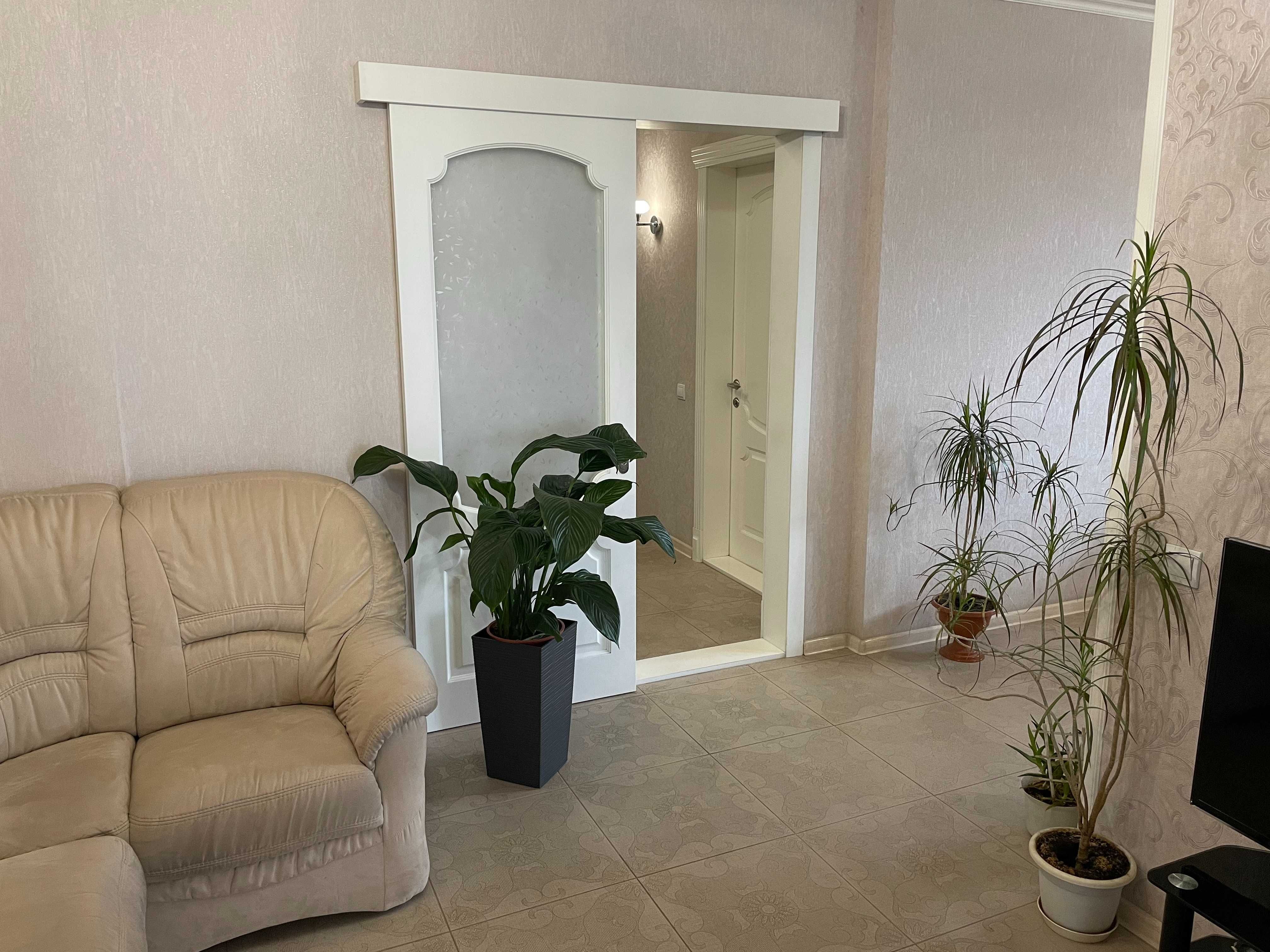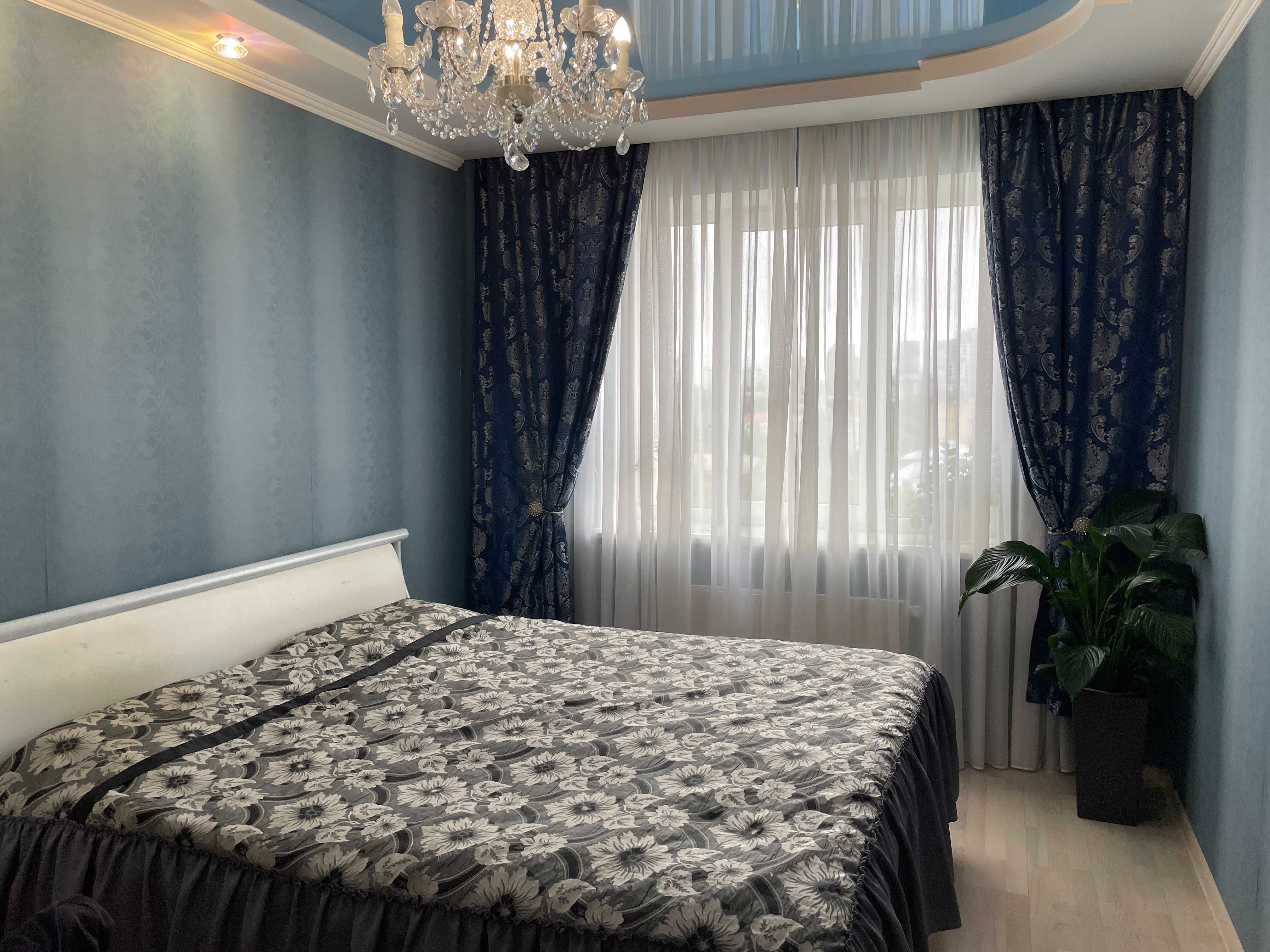 Квартира має функціональне планування: окремі кімнати, простора кухня та зони для відпочинку. За фото видно виконаний якісний ремонт у класичному стилі з використанням світлих тонів, декоративних елементів та продуманого освітлення.