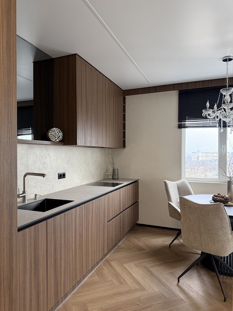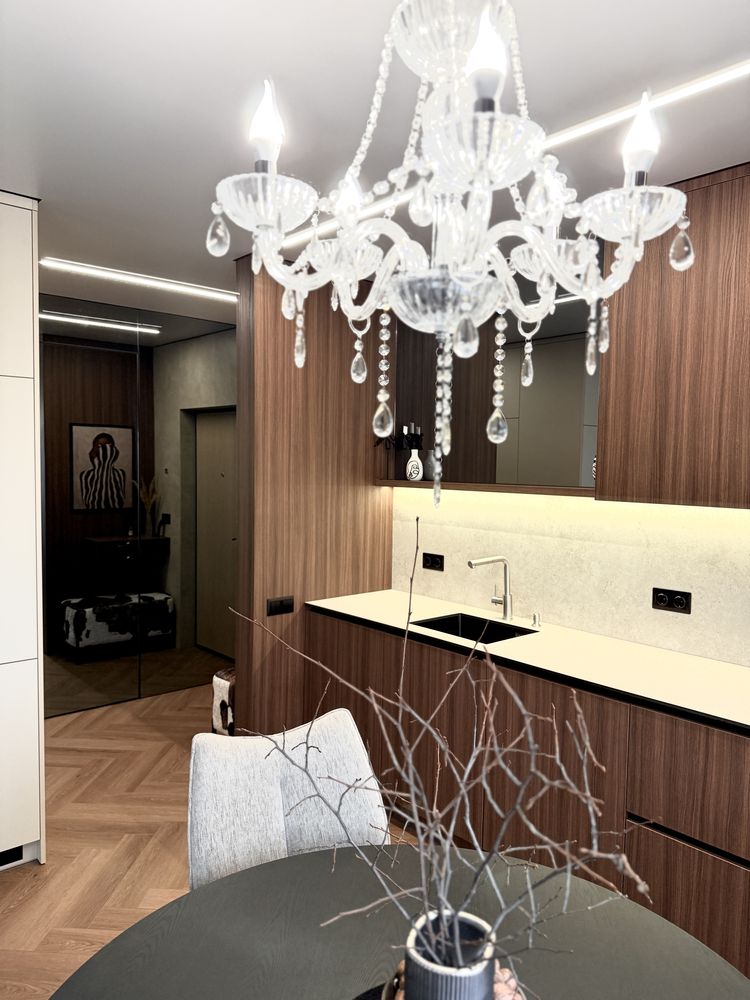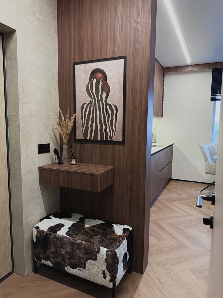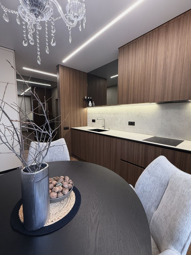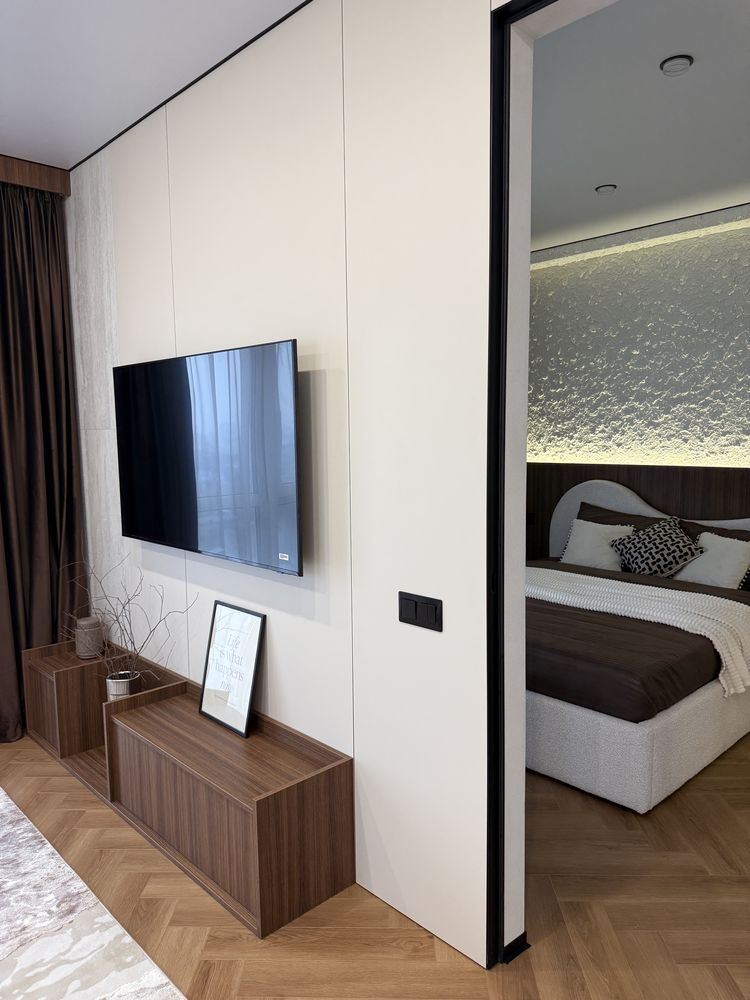 У квартирі виконаний сучасний дизайнерський ремонт, після якого ніхто не проживав. Використані якісні зносостійкі матеріали: стіни — декоративна штукатурка, підлога — SPC, у вхідній зоні — керамограніт. Передбачено багато місць для зберігання, що робить простір максимально функціональним та зручним для життя.