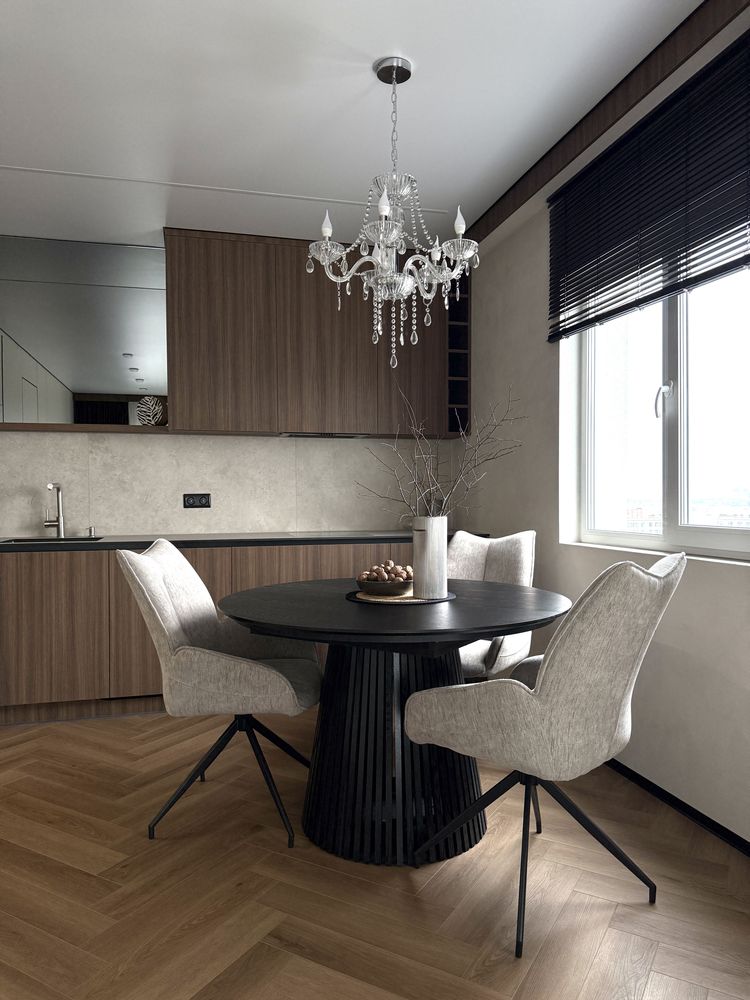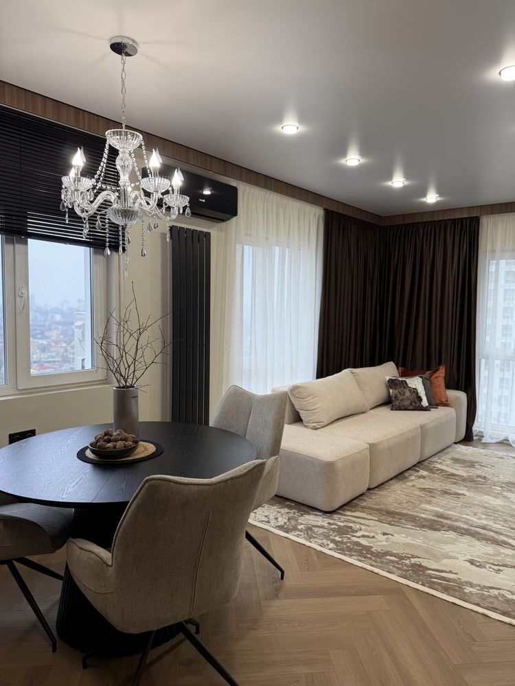 Квартира повністю укомплектована меблями та технікою — все, що представлено на фото, залишається. Встановлено інверторний кондиціонер з Wi-Fi управлінням, рекуператор з функцією підігріву повітря, вбудовану техніку (холодильник No-Frost, посудомийна машина, прально-сушильна машина, духова шафа, мікрохвильова піч, індукційна варильна поверхня). Також передбачено QLED 4K Smart TV 55”, бойлер на 100 л, теплу підлогу у санвузлі з Wi-Fi управлінням, систему фільтрації води та змішувачі прихованого монтажу з термостатом.